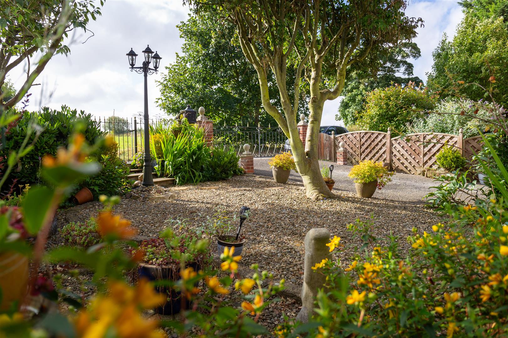 Externally, the garden to the rear has a range of plants, trees and mature herbaceous borders and steps down into a private mainly laid to lawn area offering peace and tranquility. The front of the property is gated and secure with wrought iron gates, driveway with parking for multiple vehicles and a range of plants and trees. The property sits on a prime plot with open views to front aspect.