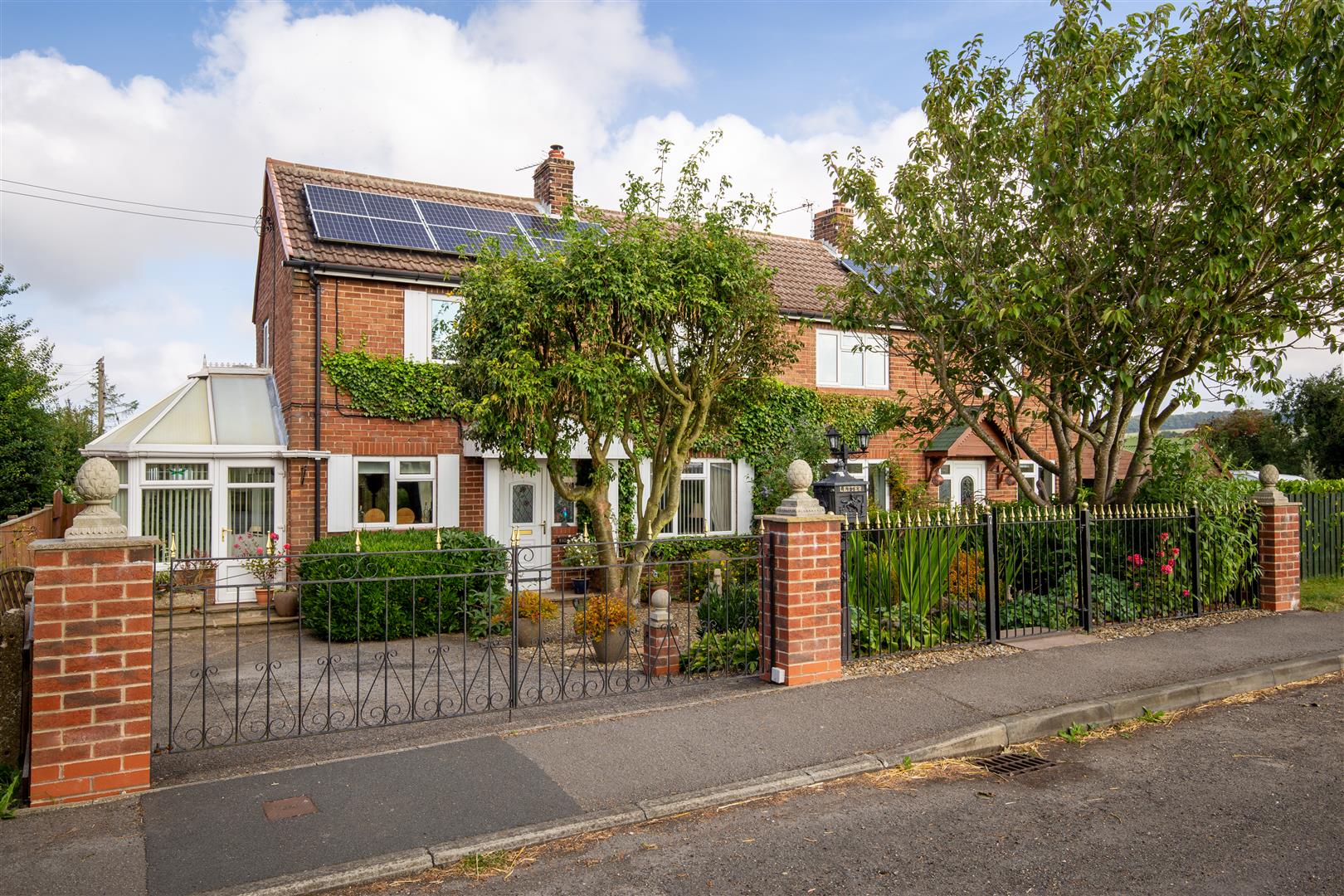 Externally, the gardens are well maintained and to the rear has a range of plants, trees, mature herbaceous borders and steps down into a private mainly laid to lawn area offering peace and tranquilly. To the front of the property is gated and secure with wrought iron gates, brick lights, lamp post, driveway with parking for multiple vehicles and a range of plants and trees. The property sits on a prime plot with open views to front aspect with open field views.