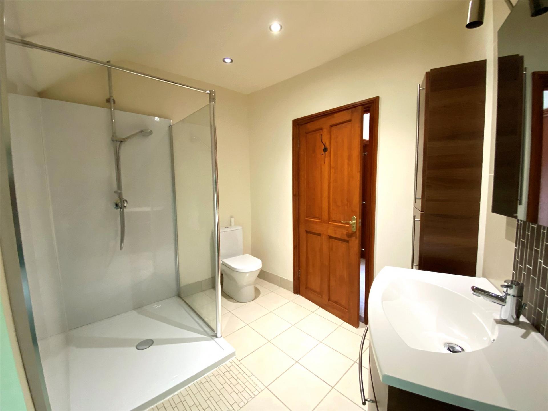 Bathroom Tiled floor, W.C, bath with shower above and wash hand basin.