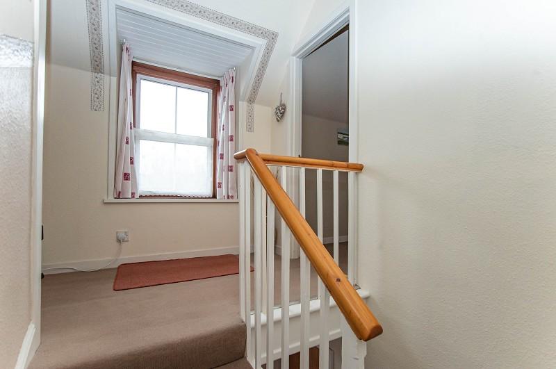 A carpeted stairwell gives access to the first-floor landing where there is a window to the front elevation and a smoke alarm. Doors lead to two bedrooms and the bathroom.