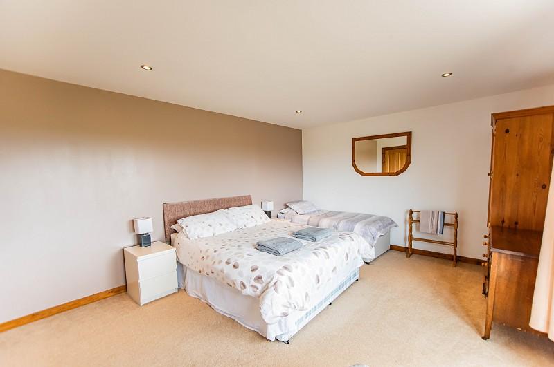 room benefits from a wood burning stove which sits on a Caithness flagstone hearth.