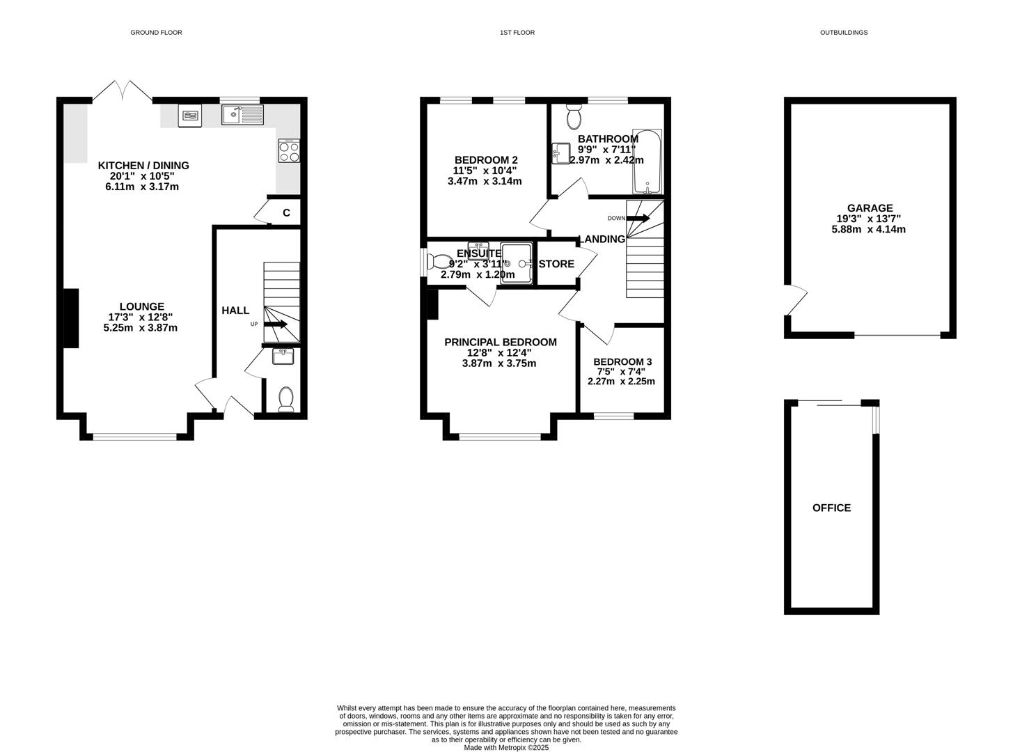 Detached Garage - 5.87m x 4.14m (19'3 x 13'7) - With roller shutter door and side door access to garden.