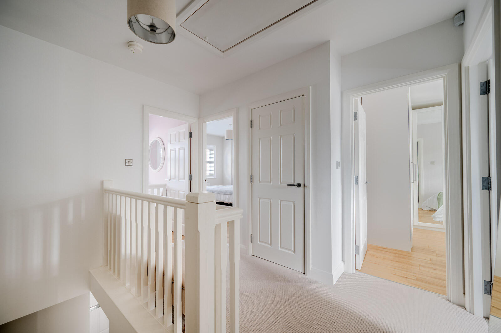 Landing - With access to roofspace via Slingsby ladder, hotpress cupboard with shelving and rail.