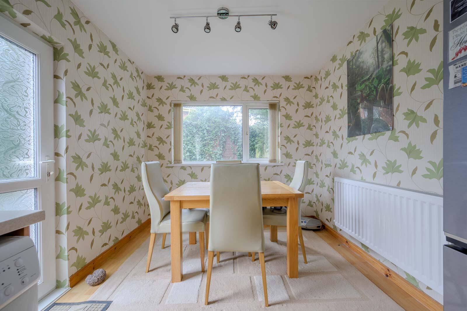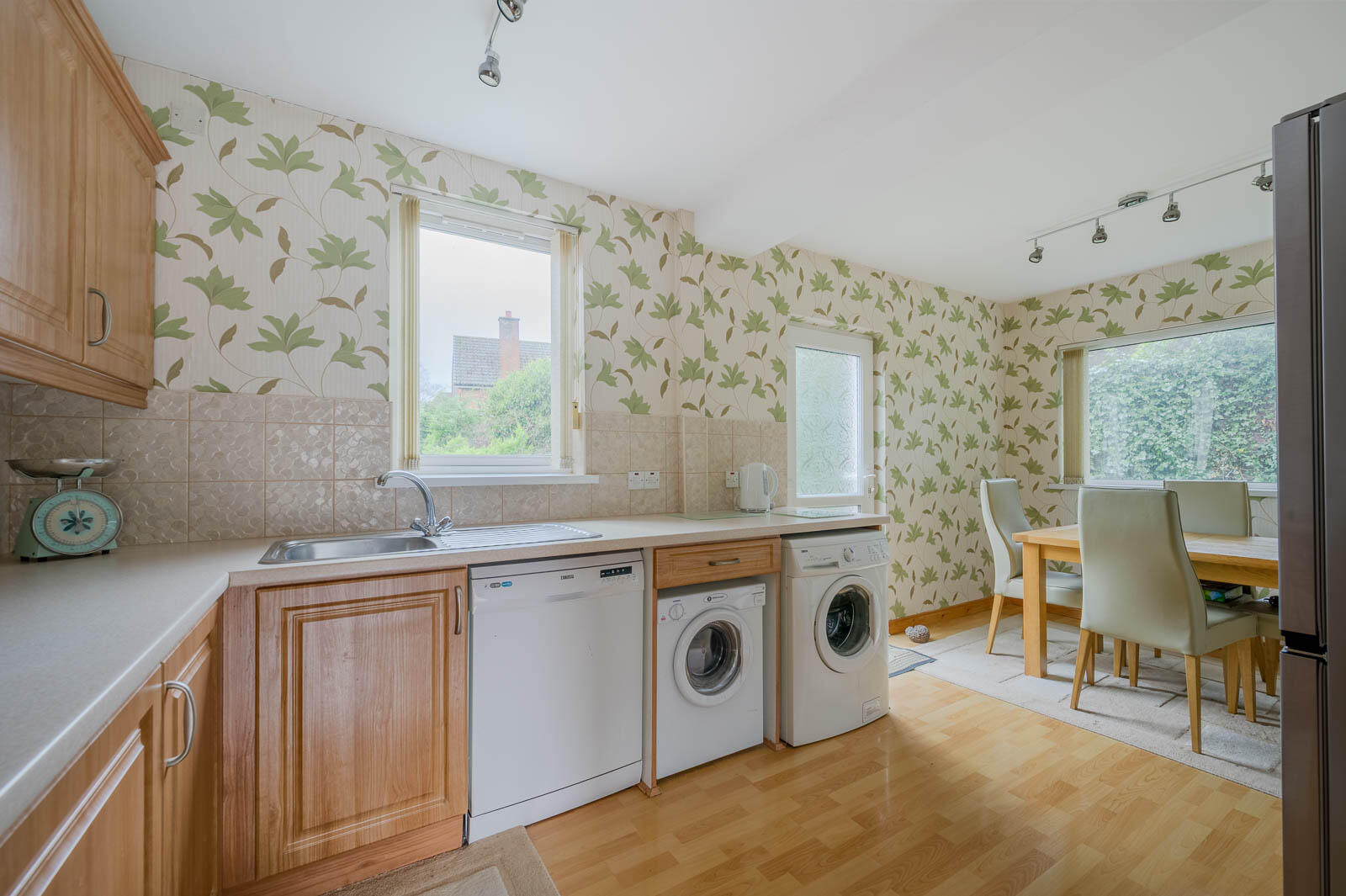 .Well-proportioned kitchen/dining area with ample storage, space for appliances, and rear garden access