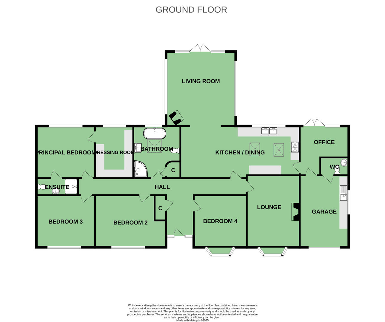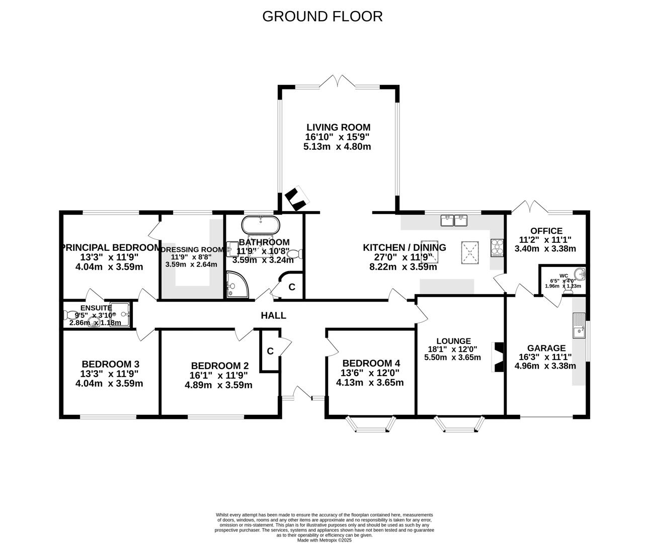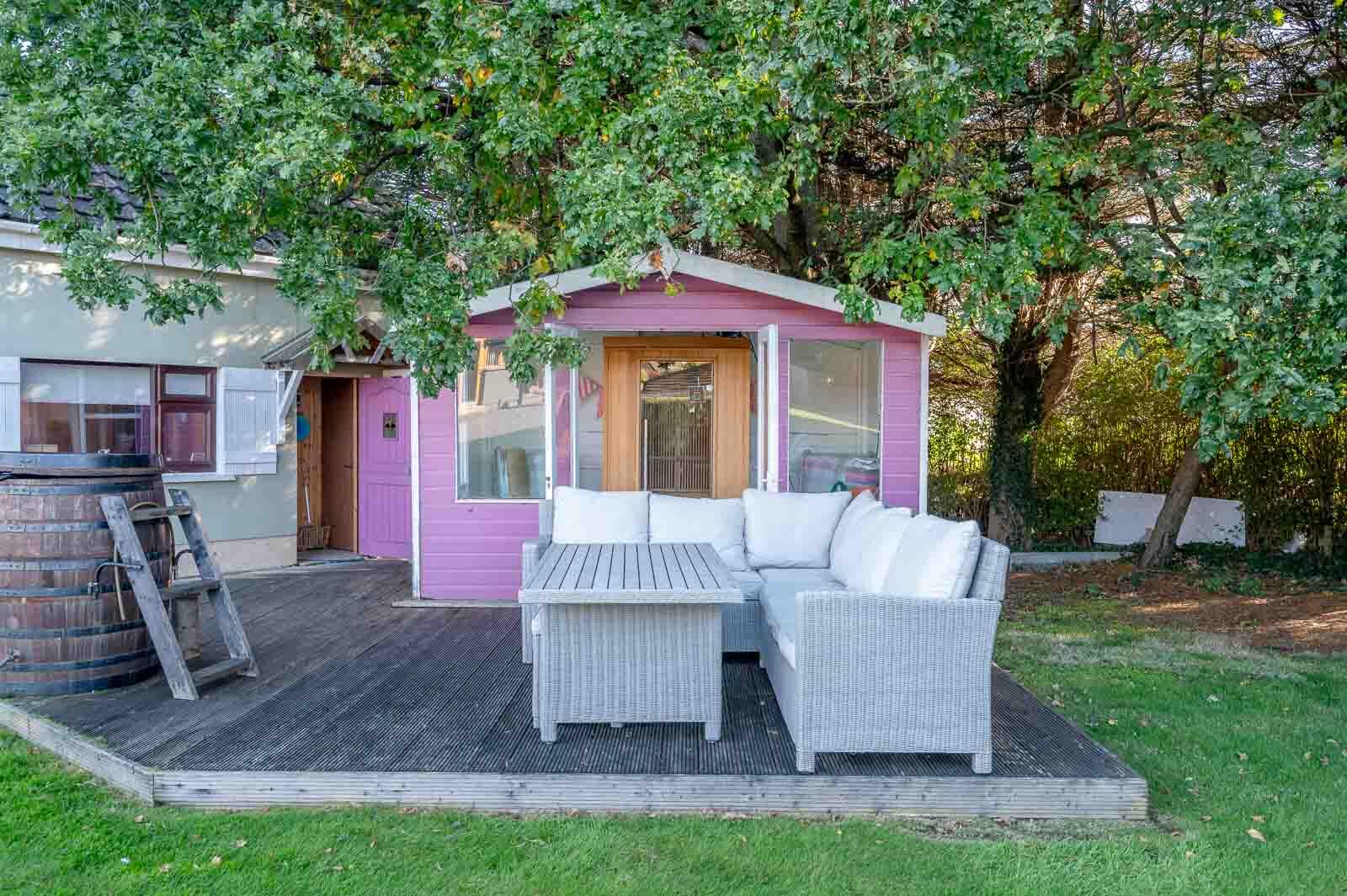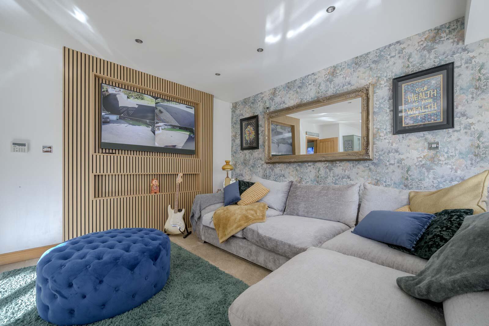 A versatile office provides a functional workspace with access to the main double garage, which is plumbed for utilities. In addition, the property benefits from a separate detached garage in the garden, which has planning permission passed for conversion, offering further potential for a home office, gym, or ancillary accommodation.