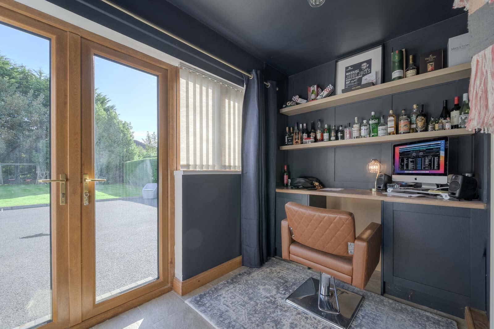 Office - 3.40mc 3.38m (11'2c 11'1) - With feature panelling wall, built-in shelving, access to garage, uPVC and double doors to rear garden, could be converted to utility or kitchen prep area, access through to double garage.
