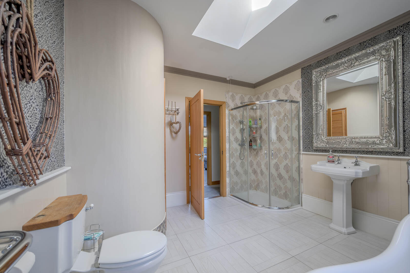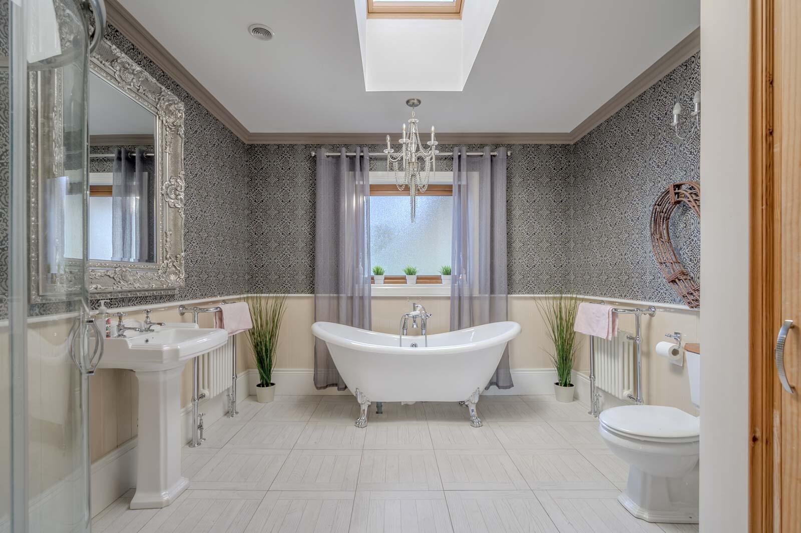 . Family bathroom with roll-top clawfoot bath and walk-in thermostatically controlled shower