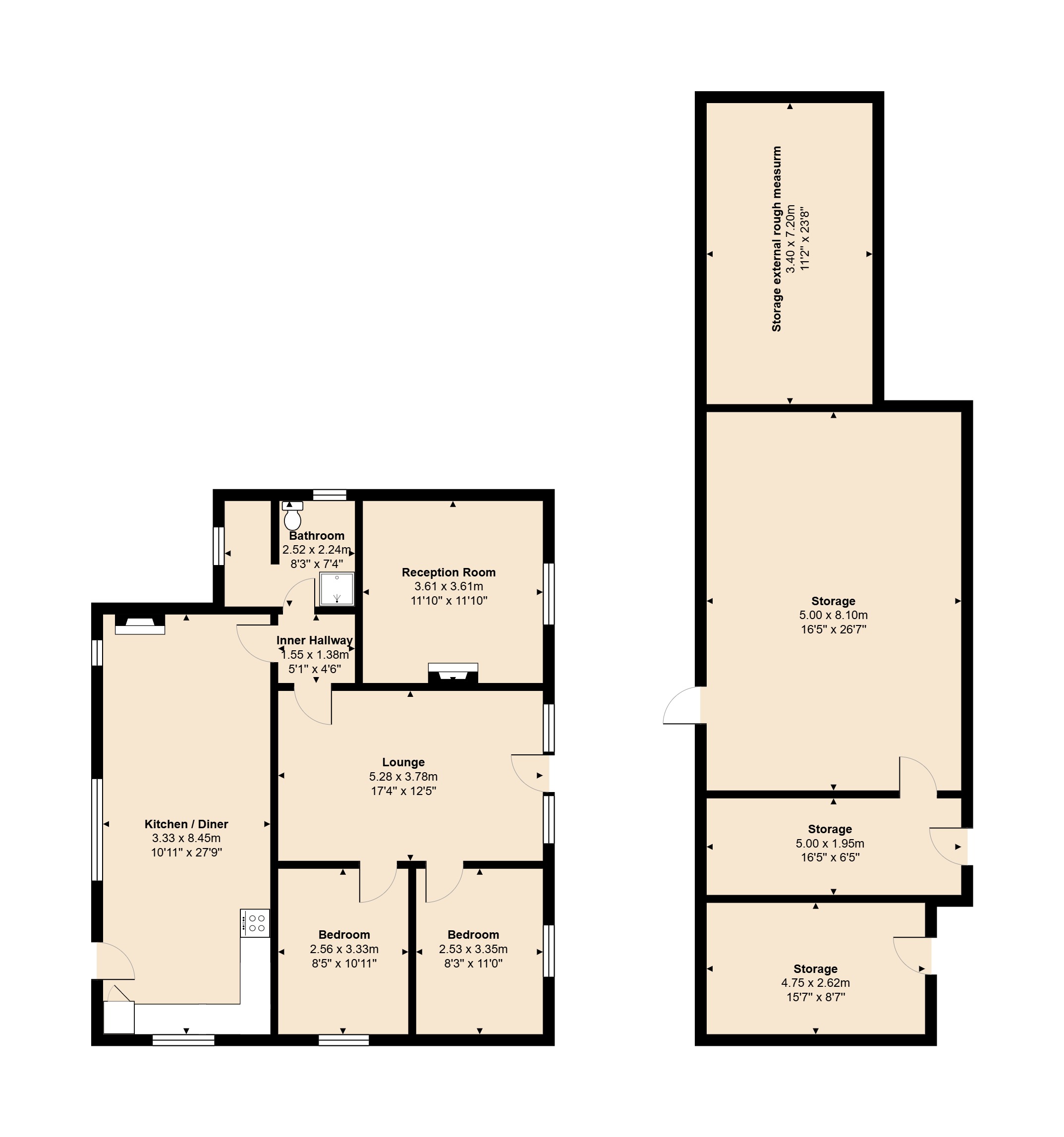 Featuring multiple outbuildings opening out to a 4 acre plot of land this property would form suitable for someone with horses or other farm animals.