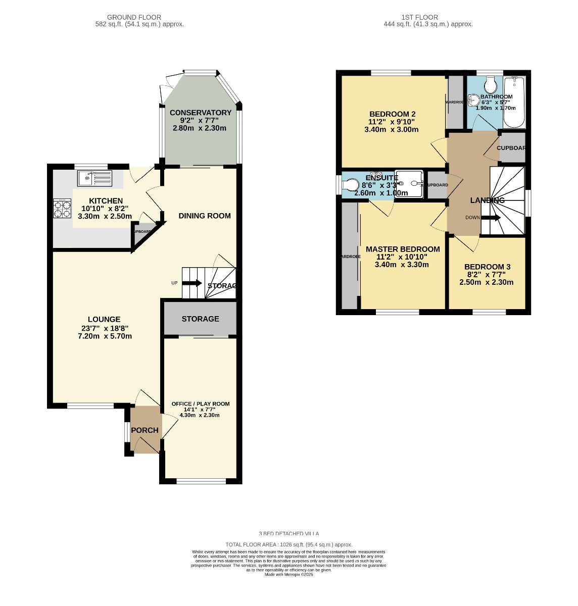 Master bedroom w: 3.3m x l: 3.4m (w: 10' 10" x l: 11' 2")