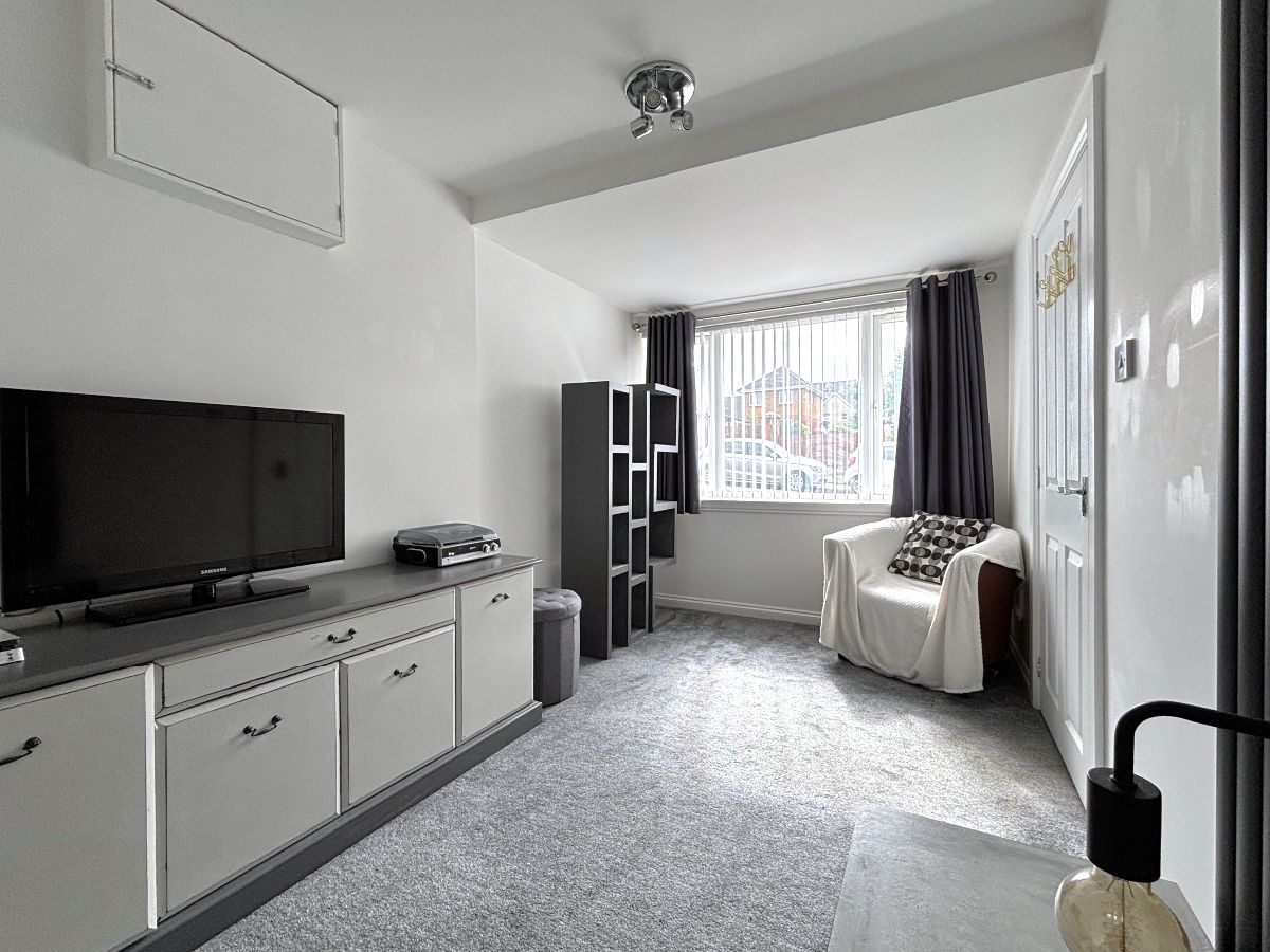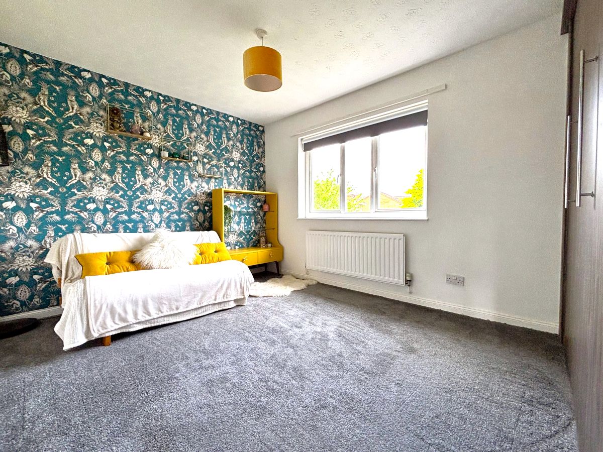 Entrance Porch with side window leads to home office/playroom which could also be a bedroom and provides fitted storage. Internal door opens to a generously proportioned lounge with open plan arrangement to the family dining room. There is access to stairs with additional storage. The dining area gives access to the conservatory via sliding patio doors. With rear aspect is the well-appointed modern fitted kitchen with integrated oven and gas hob with space for free-standing appliances, storage cupboard and glazed door opening to garden.