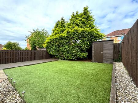 Private Enclosed Rear Garden with Artificial Lawn & Shed.