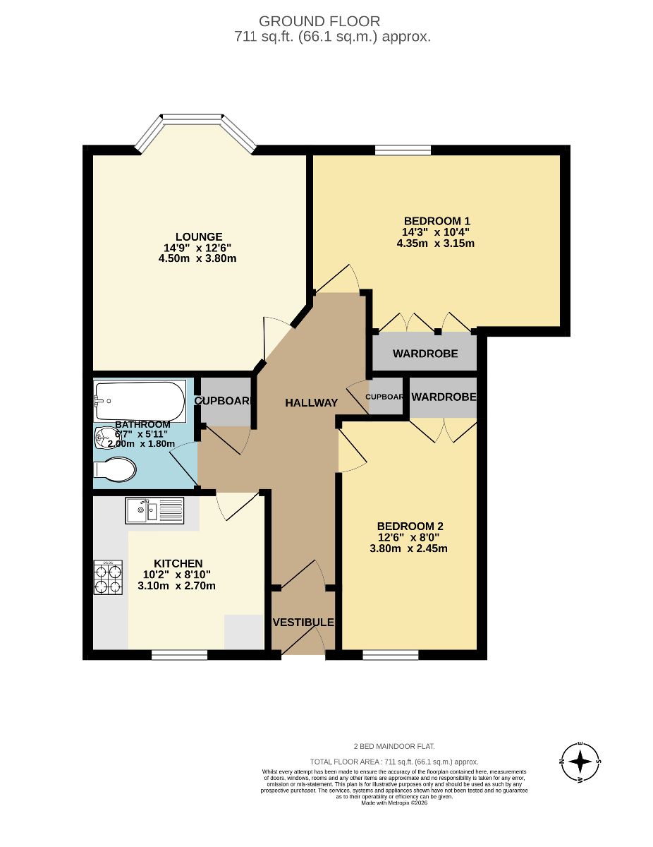 2 Bedrooms, 1 Reception Room, 1 Bathroom.