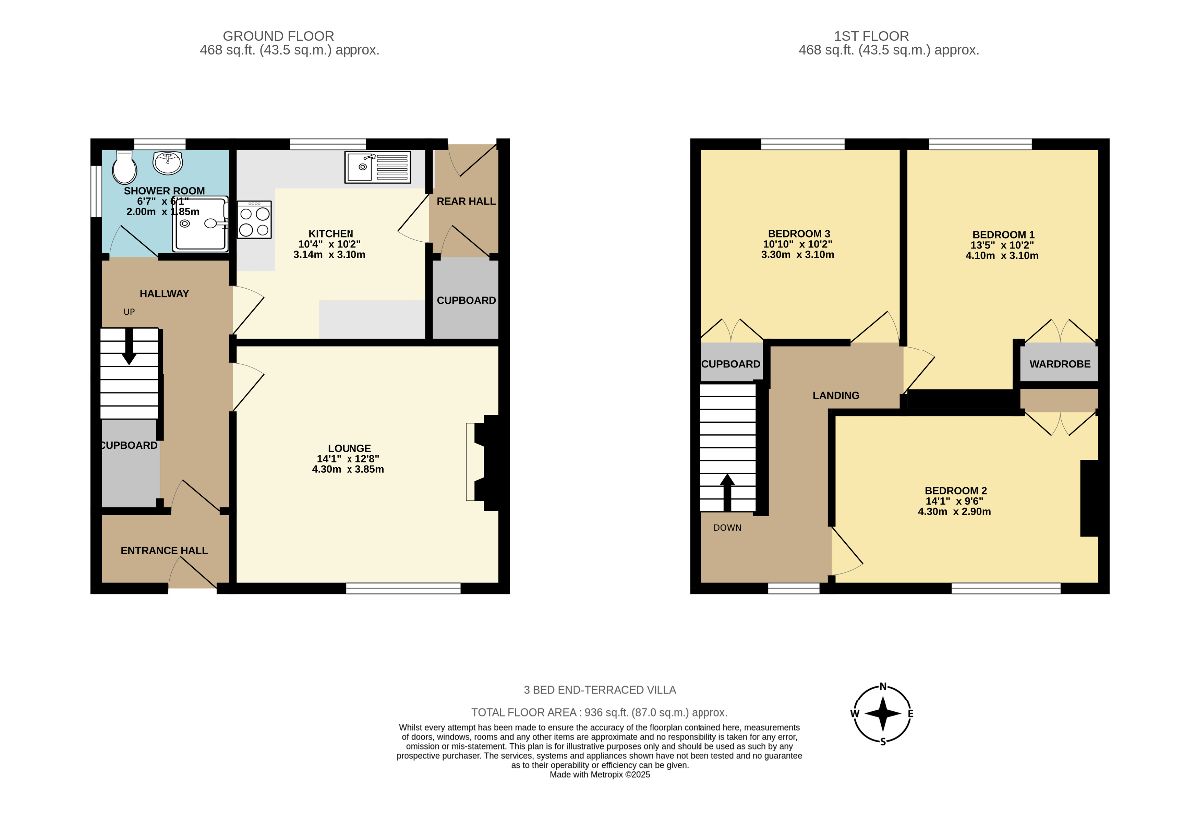 Gate opens to front garden with hedge and planted borders leading up to front door. Front door opens to entrance vestibule with internal door opens to a welcoming hallway (with storage under stairs) - leads to all rooms within the property. Spacious lounge with feature recess storage is situated to the front of the property. The generously proportioned kitchen provides a wide array of storage and worksurface space with contemporary finish and integrated oven and ceramic hob. There is space for free-standing appliances. Door leads out to rear hall and storage cupboard. The modern shower room provides a cubicle with electric shower over, washbasin and WC. Carpeted stairs to bright and airy upper landing. There are three good-sized bedrooms on the first floor - all providing fitted storage and Bedroom 2 also boasting original fireplace. The property benefits from electric heating and double glazing. Externally the property offers desirable kerb appeal with well-maintained front garden, driveway, and a generously proportioned rear garden.