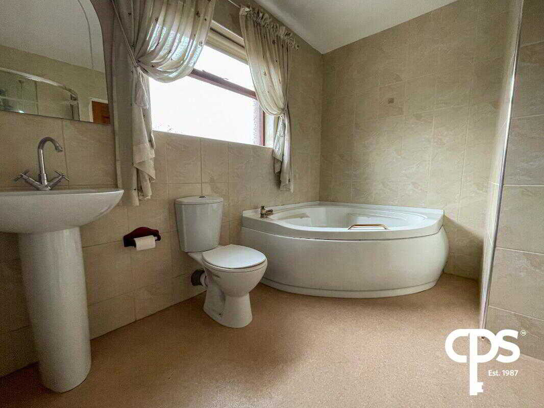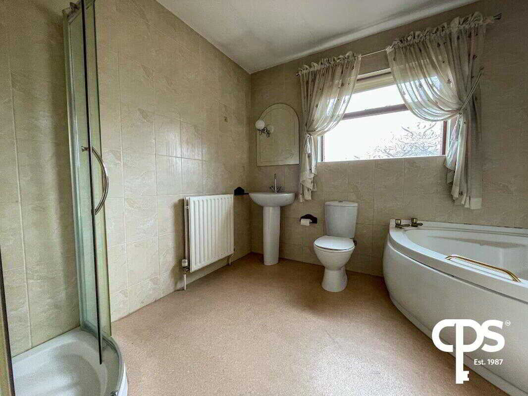 The main bathroom of the property comprises of a four piece suite to include W/C, vanity unit, hand wash basin, corner bath and corner shower fully tiled within with a PVC shower tray. The bathroom comes with lino flooring throughout with a fully tiled walls to match. The bathroom also comprises of single radiator.