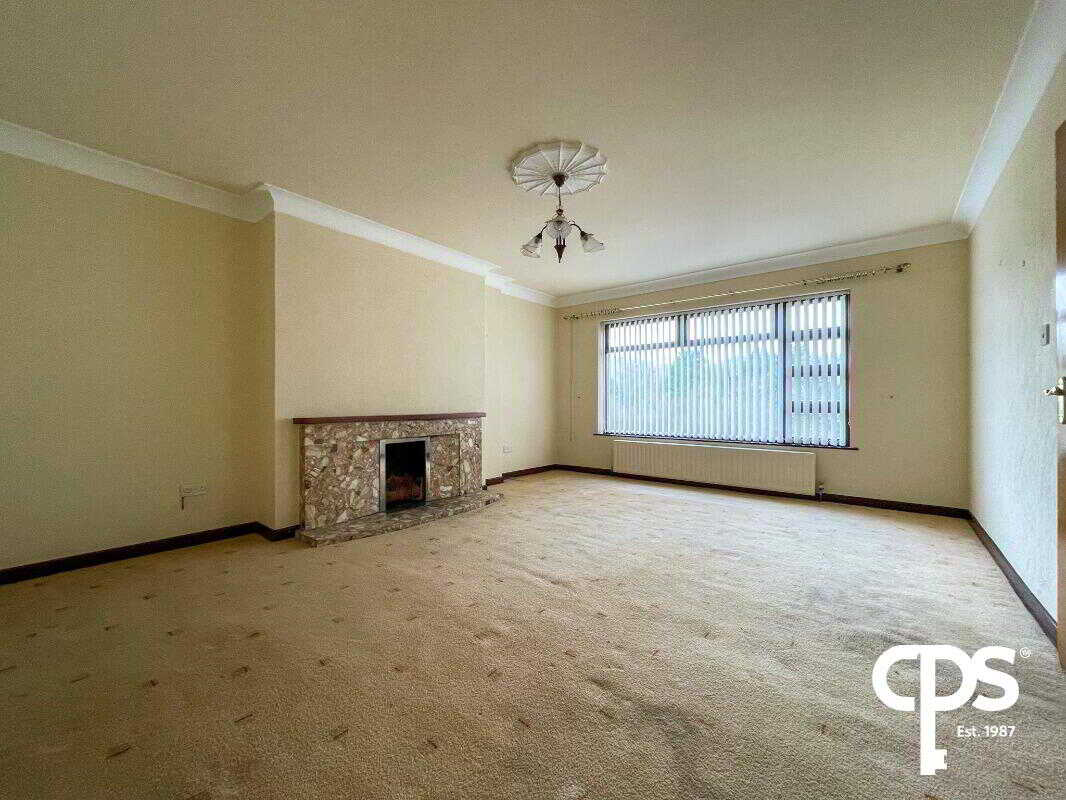 The living area boasts carpet flooring throughout and benefits from large frontal facing windows create ample lighting. The room also has electrical points fitted throughout with a double radiator and boasts an open fire that sits on a tiled hearth with a magnificent wooden surround.