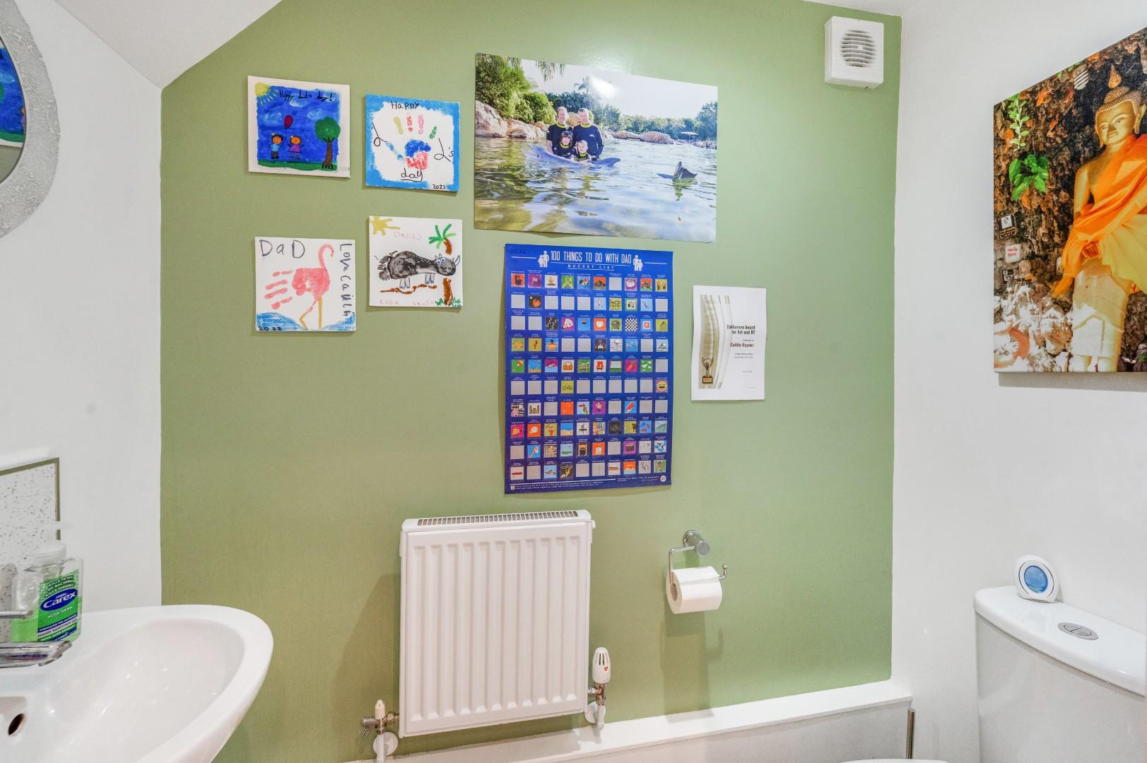 Family Bathroom - UPVC double glazed opaque window to rear aspect, enclosed bath with mixer taps & shower attachment, wash hand basin with pedestal, W.C, heated towel rail, part tiled walls, wood effect flooring, inset spotlights, extractor fan.