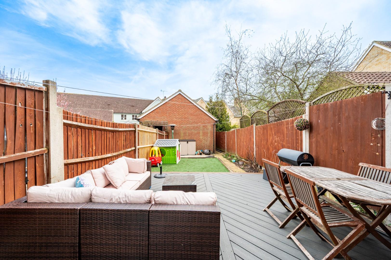 Rear Garden - With a decked area for entertaining with the remainder laid to artificial lawn.