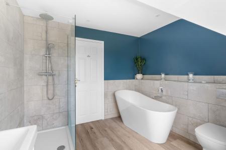 - Large rear garden with lawn, terrace, rockery and greenhouse