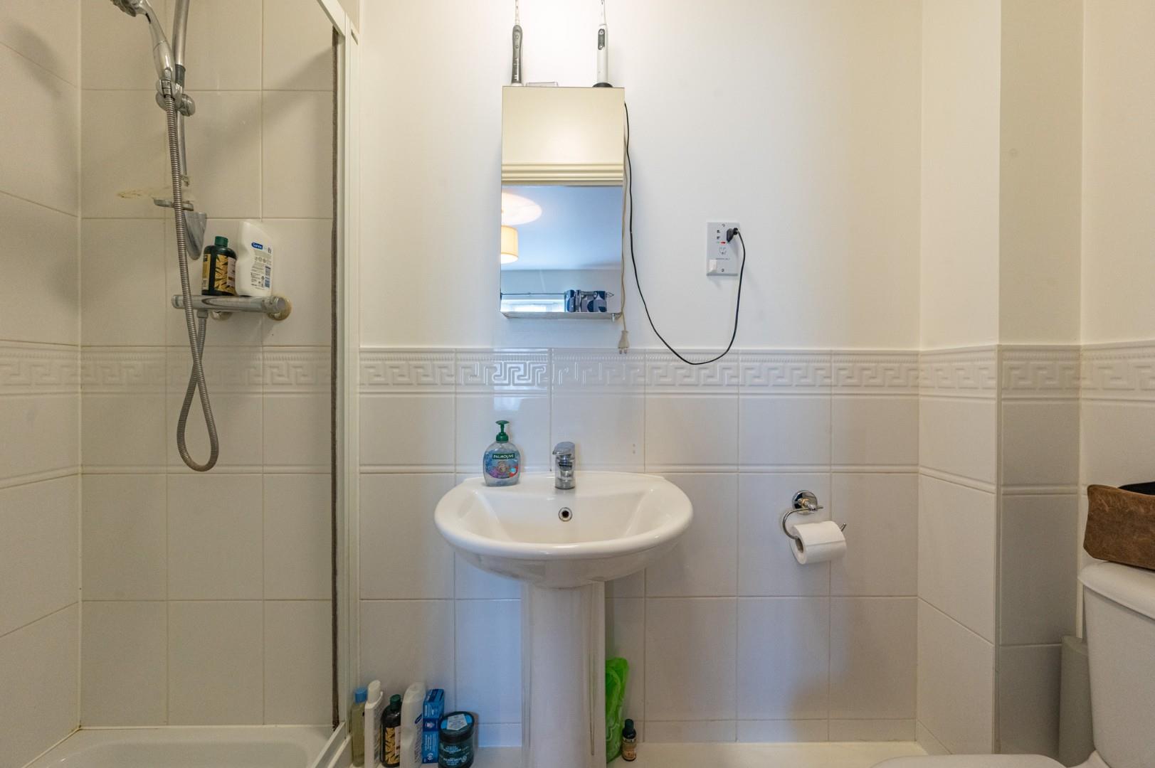 En-Suite - 2.443 x 0.977 (8'0" x 3'2") - Fitted with a tiled shower cubicle with glass enclosure, low level W.C, wash hand basin with pedestal.