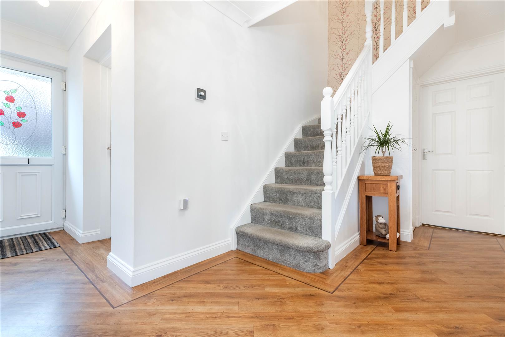 Entrance Hall - 4.4m x 4.4m (14'5" x 14'5") - Double glazed UPCV frosted door to the front aspect, double glazed UPVC frosted windows to front aspect, access to under stairs storage, wall mounted radiator, Karndean flooring, ceiling mounted light fixture, power point.