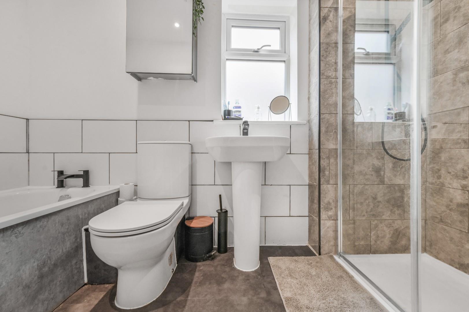 Family Bathroom - Opaque window to side aspect, fitted with a panel enclosed bath, tiled shower cubicle with glass enclosure, wash hand basin with pedestal, low level W.C, extractor fan.