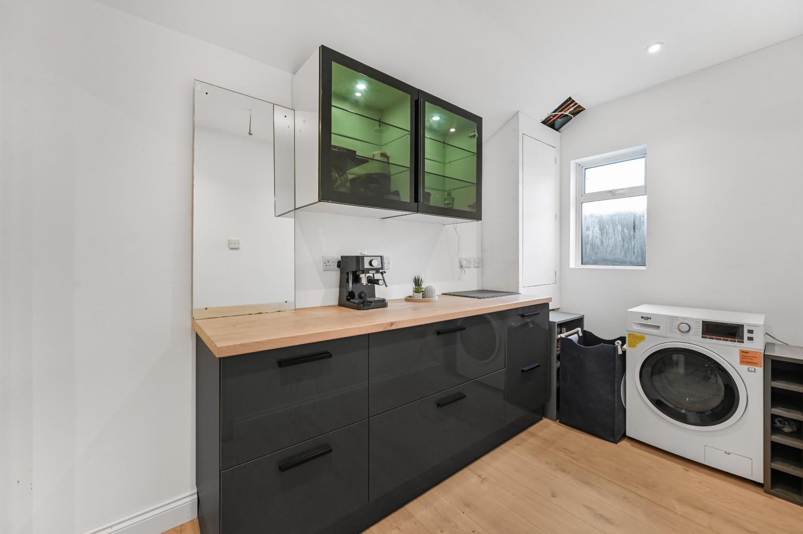 Utility Room - Opaque window to rear aspect, fitted with a range of eye and base level units with working surface over, space for washing machine, door leading to:-