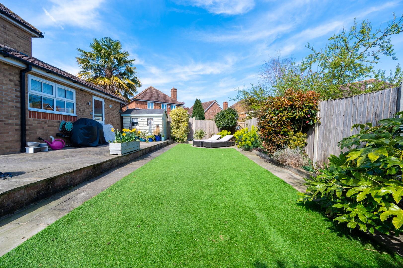 Rear Garden - The rear garden has been beautifully landscaped and is made up of a generous patio area perfect for entertaining with the remainder laid with artificial lawn. There is an array of well stocked flower beds, shrub borders, timber shed that will remain and a gate granting access to the front.