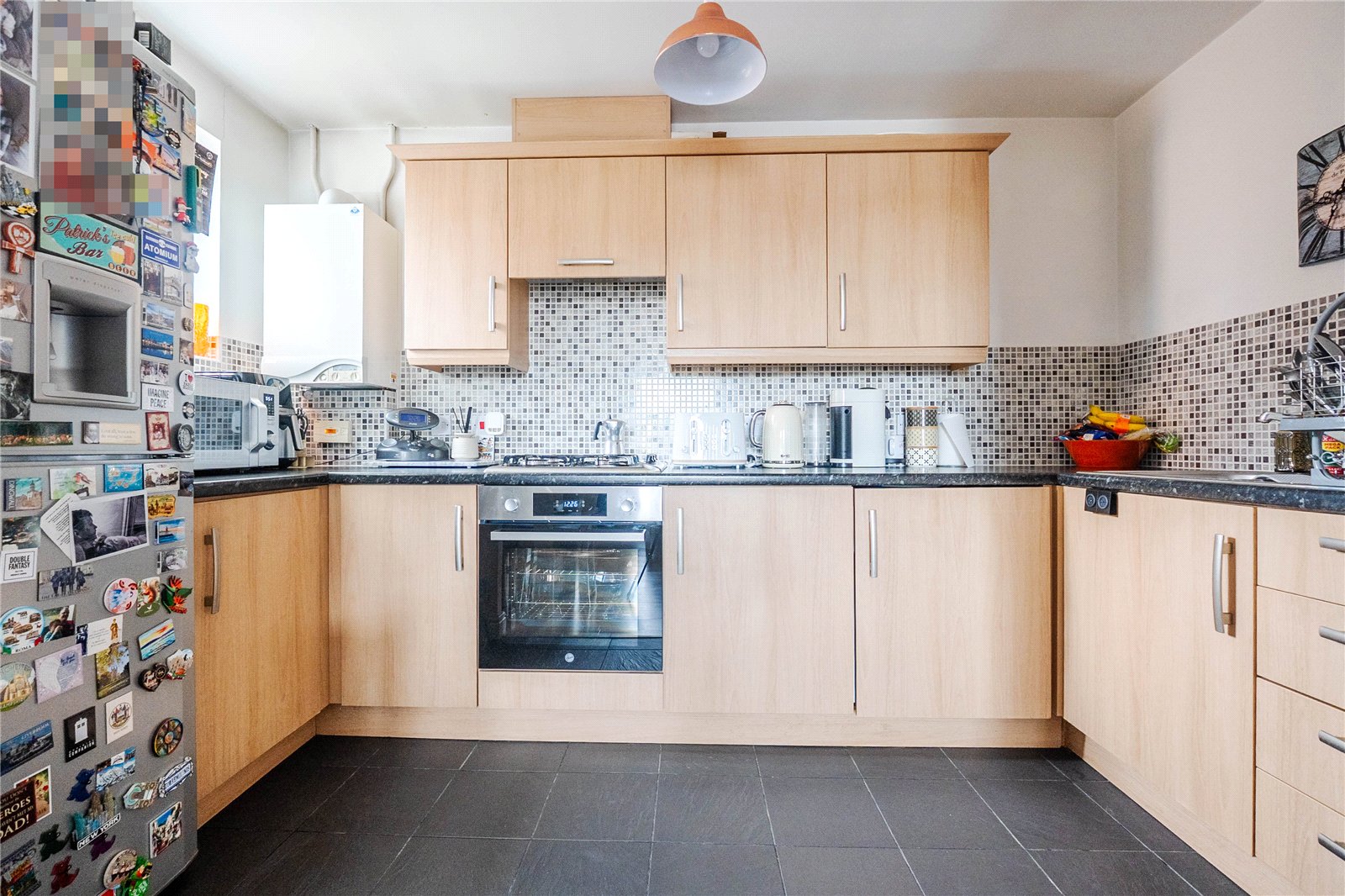 At the end of the hallway is where you find the open living space. The lounge/diner flows nicely into the kitchen, with three windows bringing in plenty of natural light.