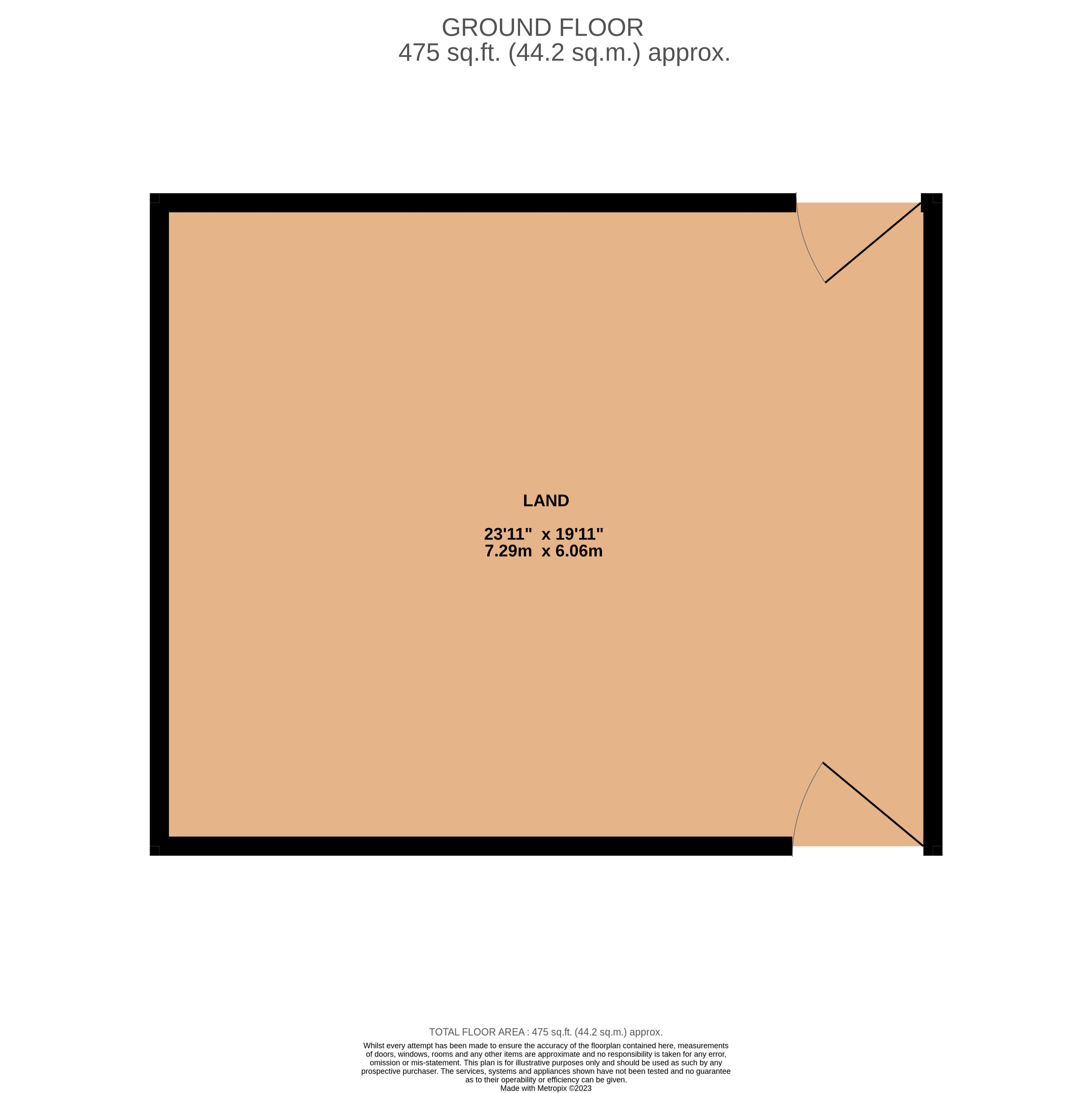 Measuring 23'11" X 19'11" (7.29m X 6.06m) a total of 475 sq. ft (44.2 sqm) approx. with gated access, mainly laid to lawn with paved area and storage shed.