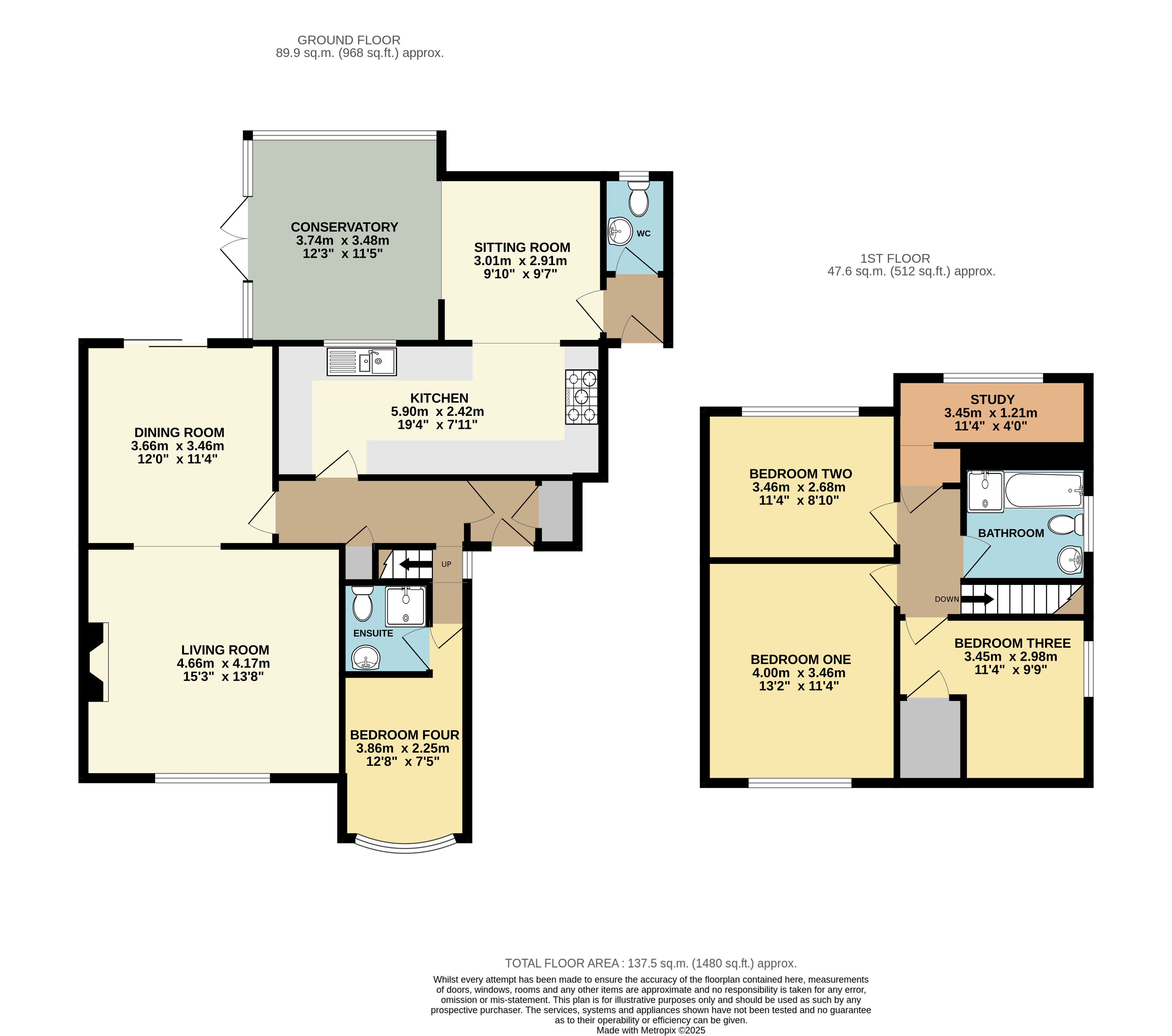 Upstairs, you’ll find three well-proportioned double bedrooms, a dedicated study/home office, and a stylishly refitted family bathroom.