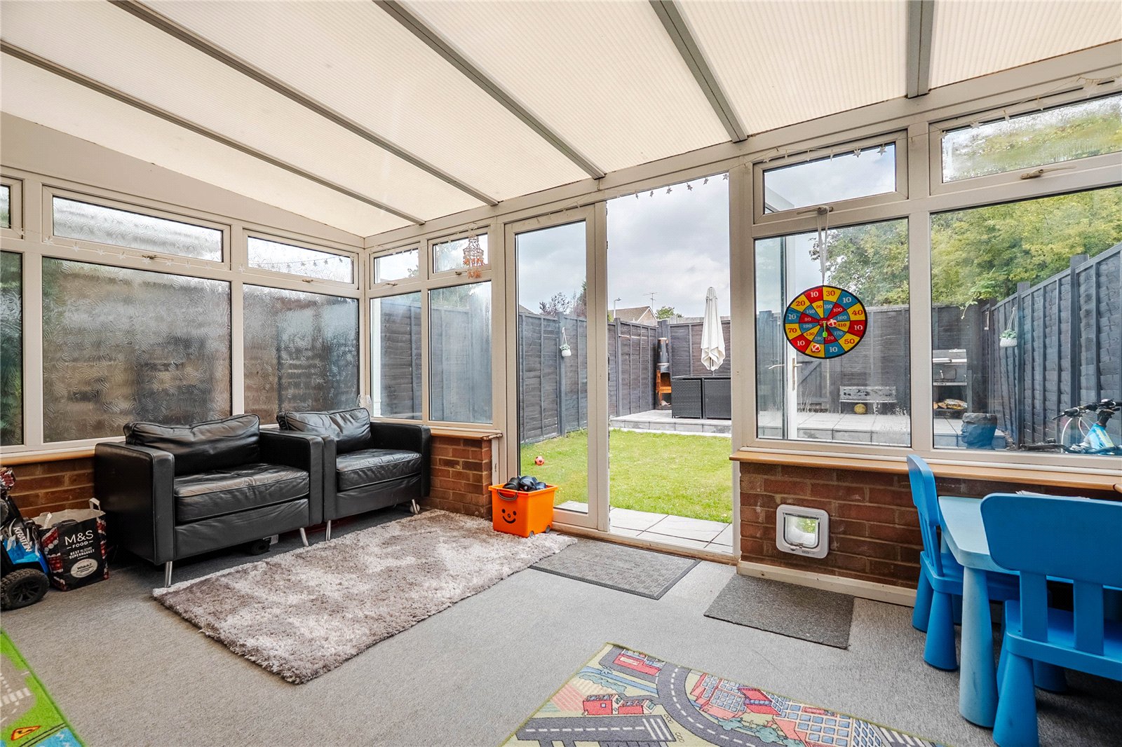 The ground floor features a generous entrance hall leading into a bright and airy 21' dual-aspect lounge/diner, complete with sliding patio doors that open into the full-width conservatory—ideal for entertaining family and friends. The modern kitchen also provides direct access to the conservatory, further enhancing the home's social layout.