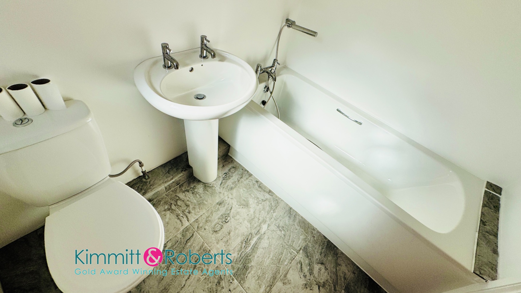 - Modern open-plan kitchen and refitted bathroom with freestanding bath