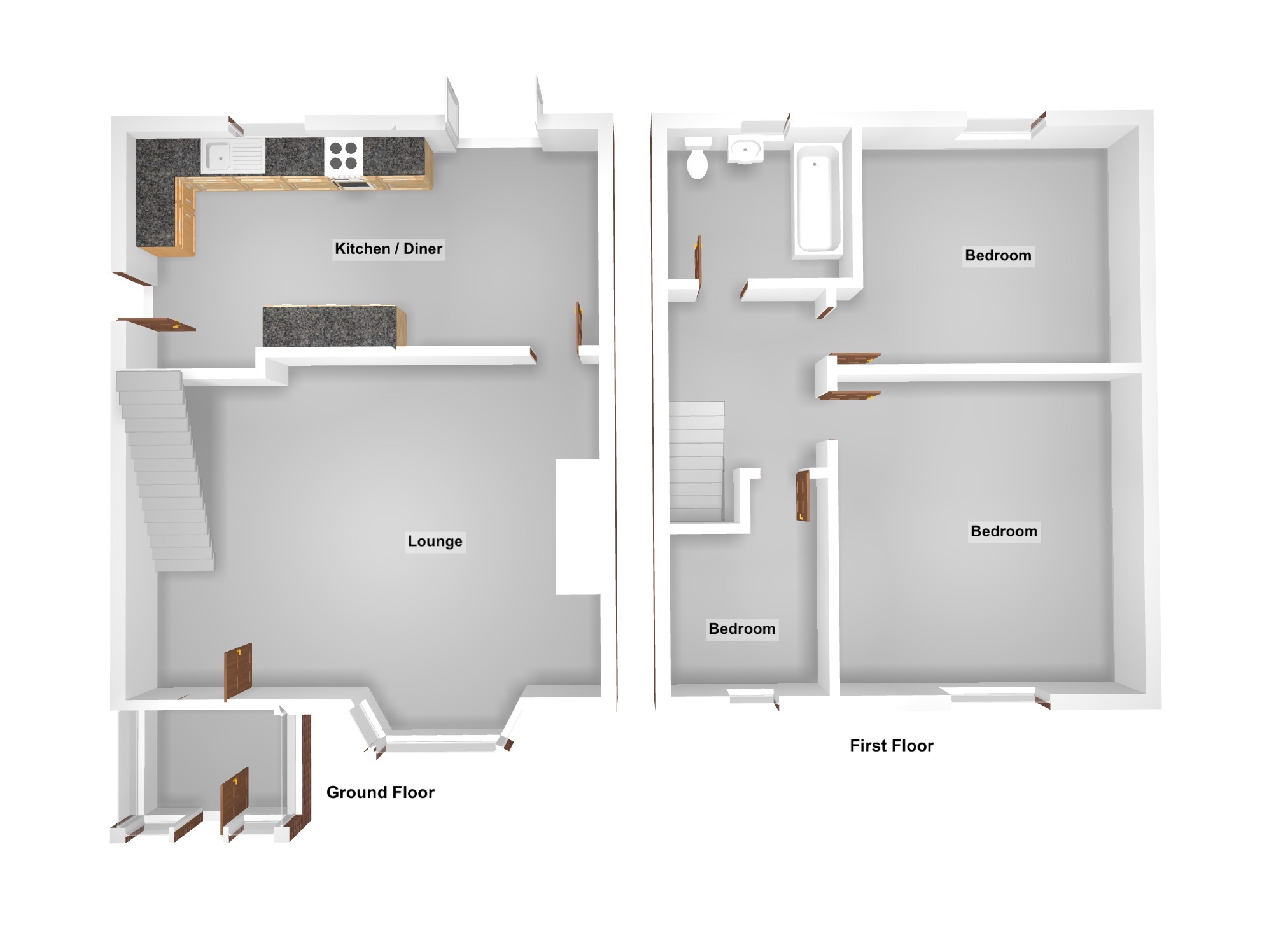 GROUND FLOOREntrance Porch - Lounge - 5.3 x 3.1Kitchen / Diner - 5.3 x 2.5
