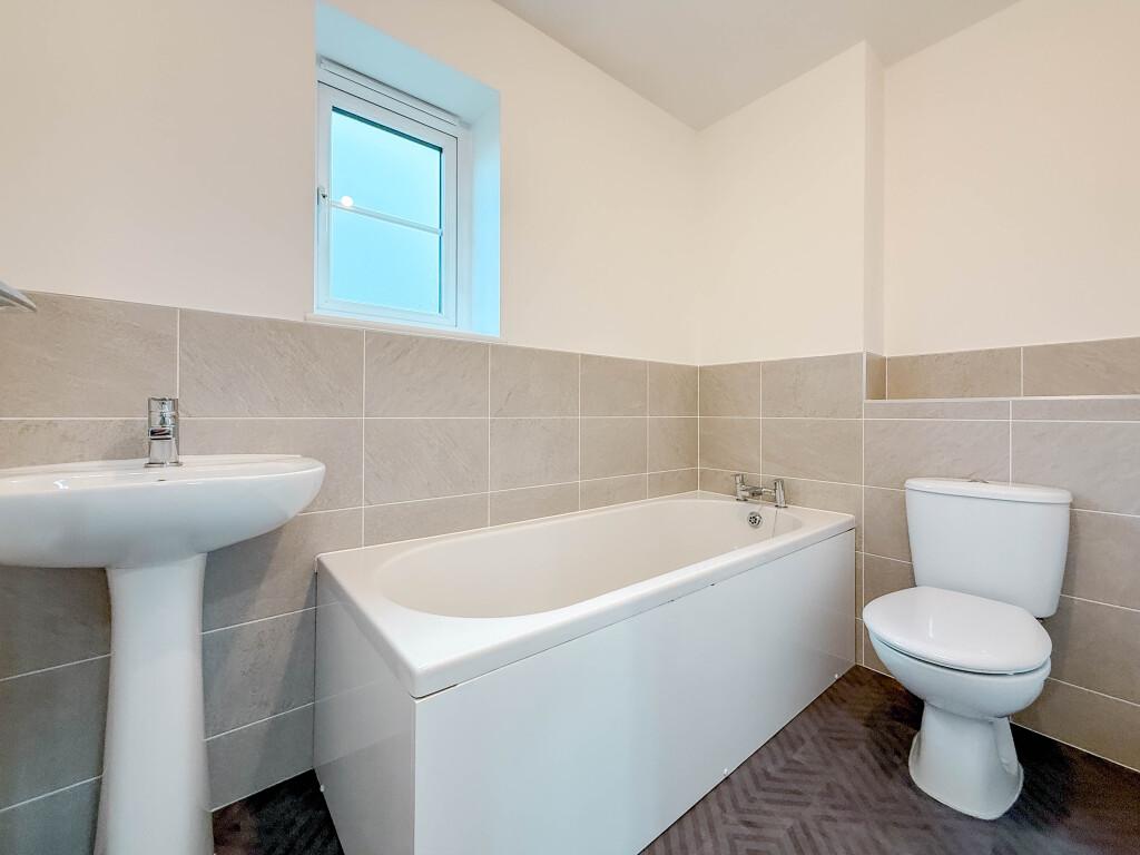 Upstairs, there are three generously proportioned double bedrooms. The principal bedroom benefits from a stylish ensuite shower room and decorative wall panelling, while the landing includes a storage cupboard. A contemporary three-piece bathroom completes the first floor.