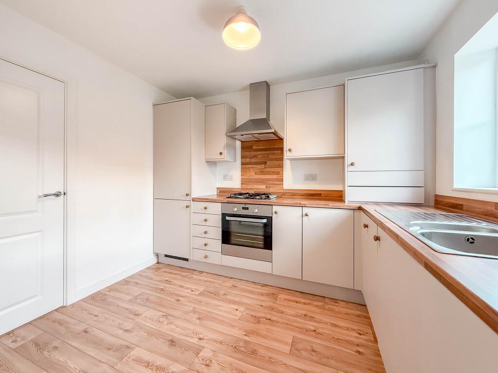 The ground floor opens with a welcoming entrance hallway, complete with a WC and handy understairs storage. The lounge flows seamlessly into the dining room, which features French doors leading out to the rear garden, perfect for indoor and outdoor living. The modern kitchen is well equipped with a full range of base and wall units, integrated cookware, fridge freezer, washing machine and dishwasher, offering everything you need for day-to-day family life.