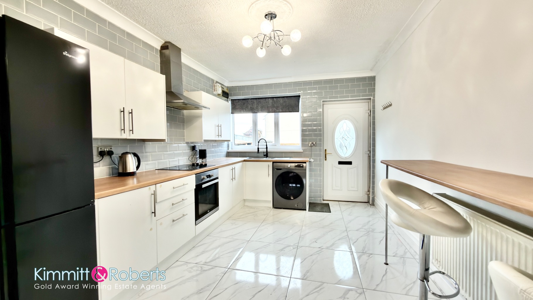 Central to the home's appeal is the refitted kitchen, a contemporary space designed for both functionality and style. Equipped with modern units and work surfaces, it provides an excellent environment for culinary pursuits. The thoughtful layout ensures plenty of storage and preparation space, making it a joy to use daily. Adjacent to the kitchen, there is convenient access to the rear of the property.