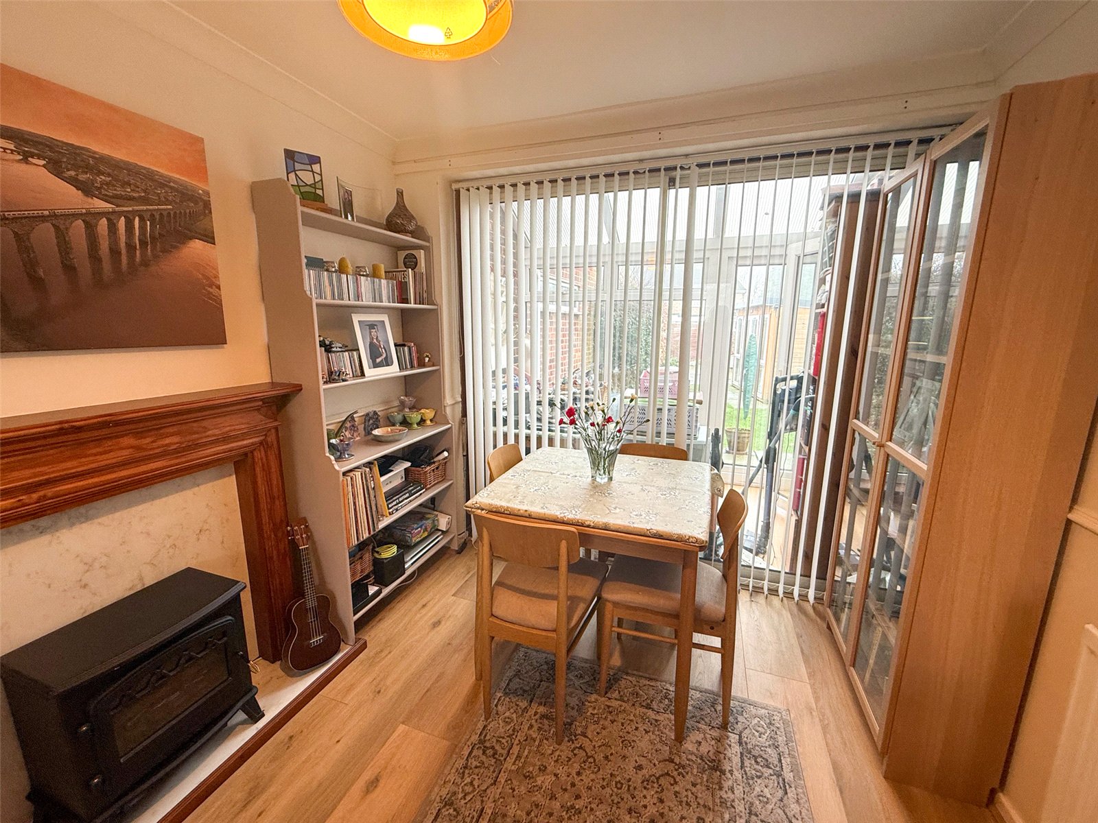 Positioned to the left hand side is the spacious “L” shaped living room and dining room which is generously flooded with natural light courtesy of the UPVC double glazed picture window which enjoys pleasant views over the front aspect and small village green. Neutrally decorated, UPVC double glazed sliding doors allow access into the conservatory room which is a versatile space and could be utilised as a study or crafts room. There is also a door which provides access to the rear gardens, and another leading into the kitchen.