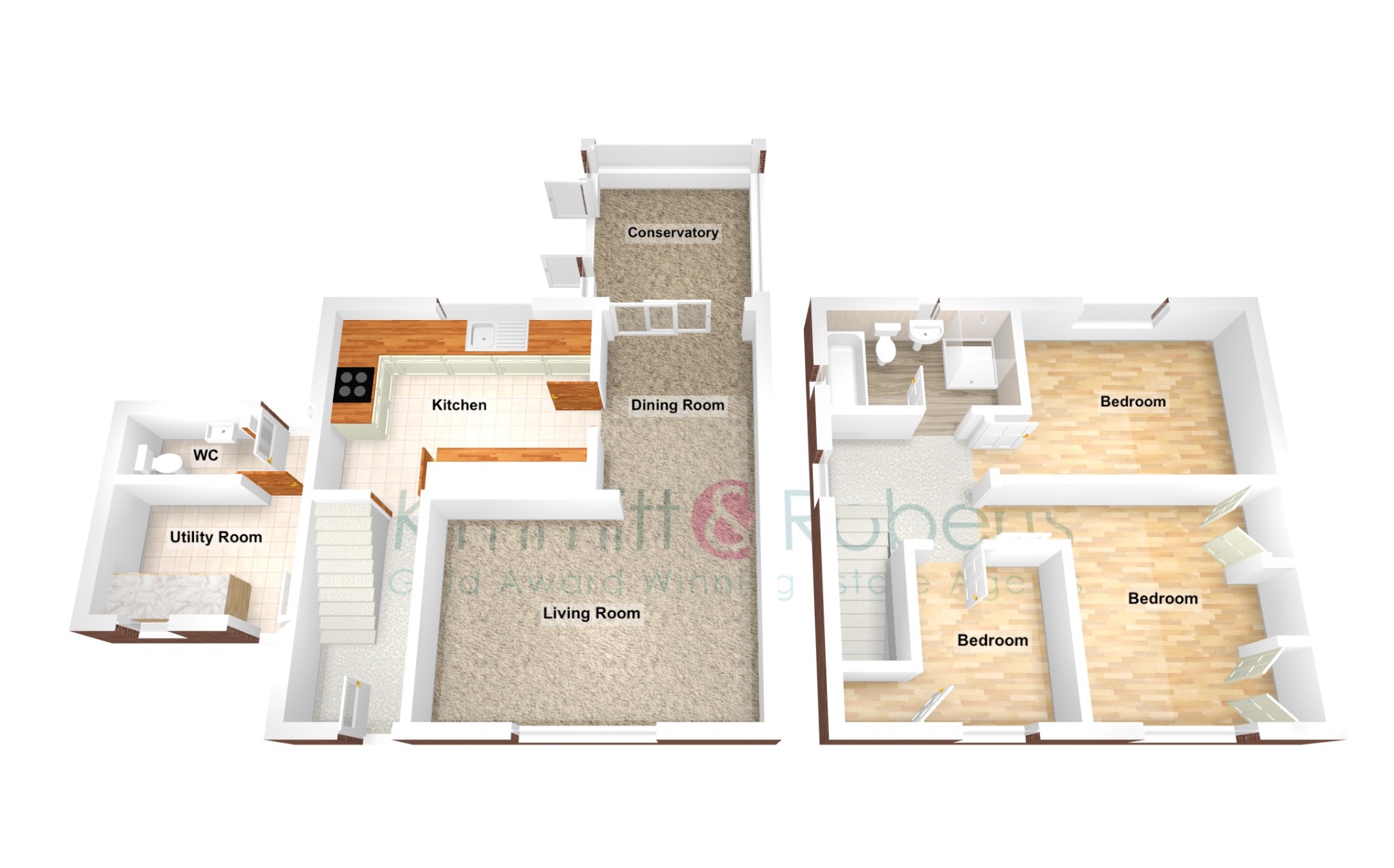 The kitchen, while functional, offers scope for personalisation, allowing new owners to create their dream culinary space. The addition of a utility and ground floor Wc offers an added touch of practicality.