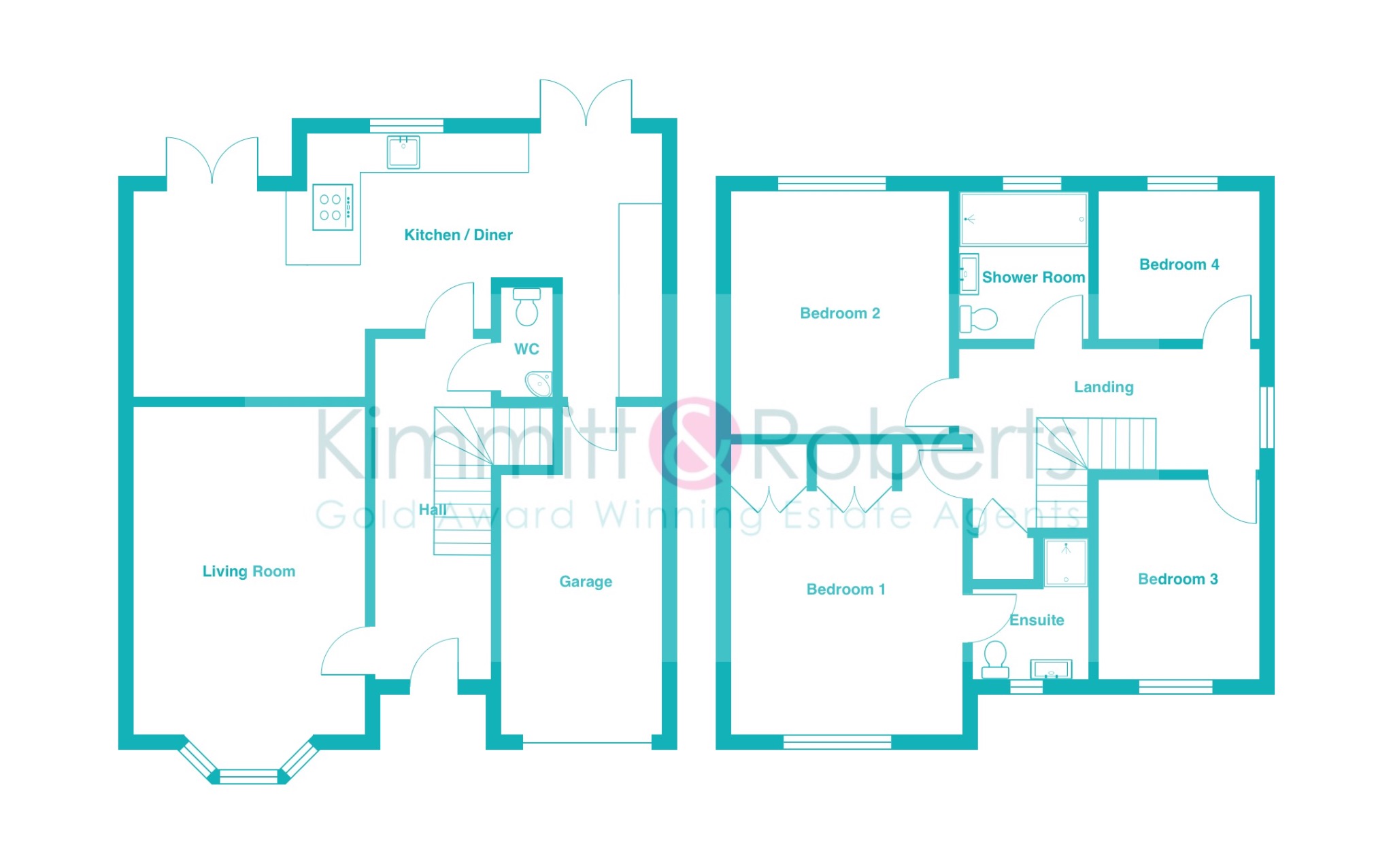 FIRST FLOORLandingBedroom 1 (3.50m x 4.90m) fitted wardrobesEnsuite (1.90m x 2.30m) refittedBedroom 2 (3.50m x 3.60m)Bedroom 3 (3.00m x 2.40m)Bedroom 4 (2.40m x 2.30m)Bathroom (2.00m x 2.30m) refitted as shower room