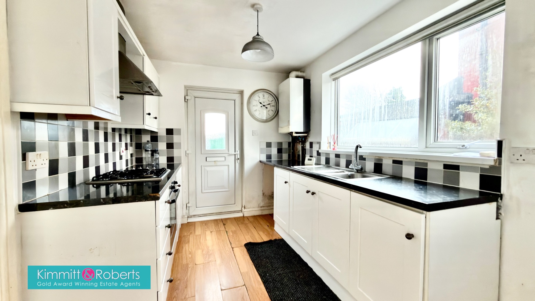 The kitchen, conveniently located off the reception room, offers a practical layout with ample storage and workspace. While functional, it also presents an opportunity for a new owner to personalise and upgrade to their own taste and style, adding significant value. From the kitchen, there is direct access to the rear garden, ideal for al fresco dining and easy outdoor living.