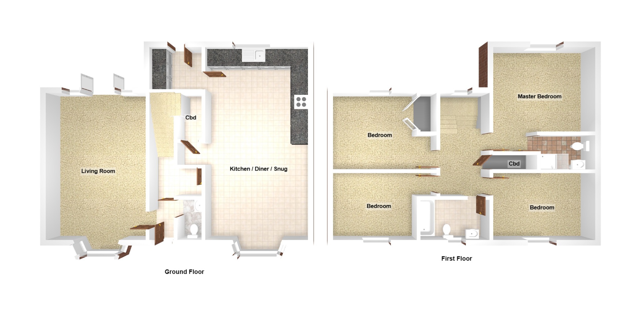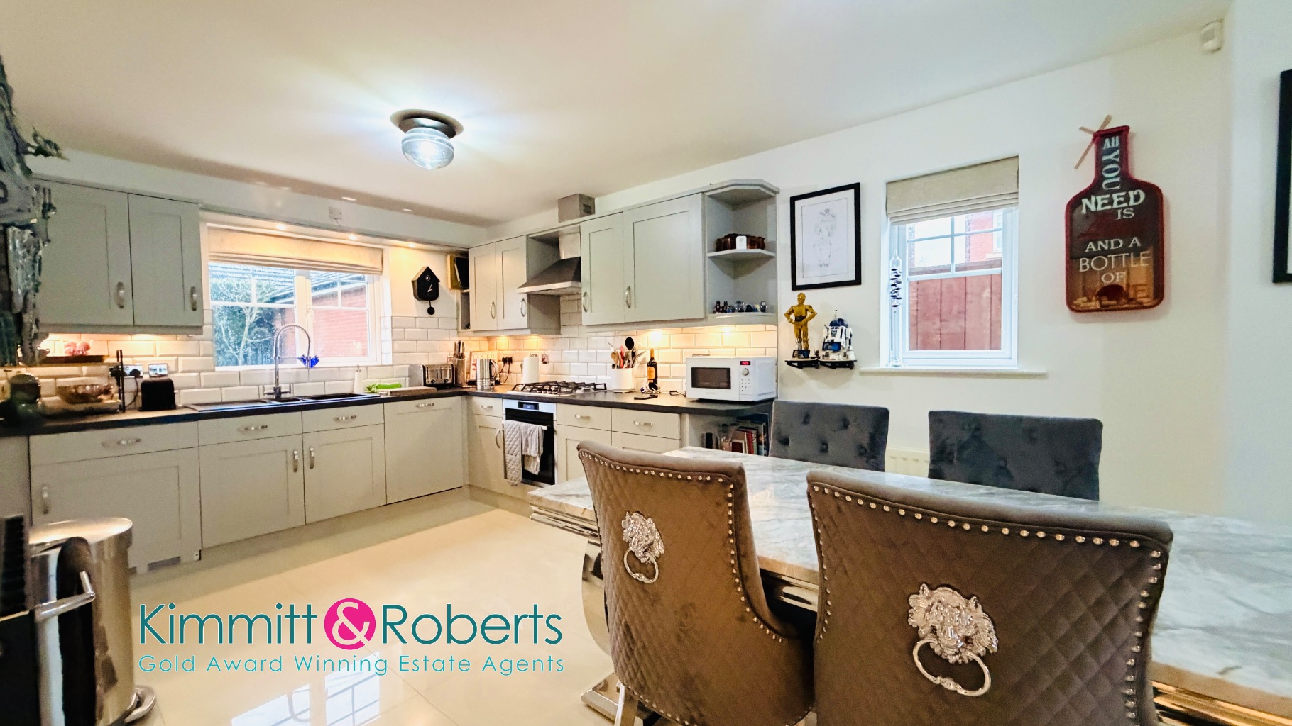 - Open-plan kitchen/diner/snug with integrated appliances