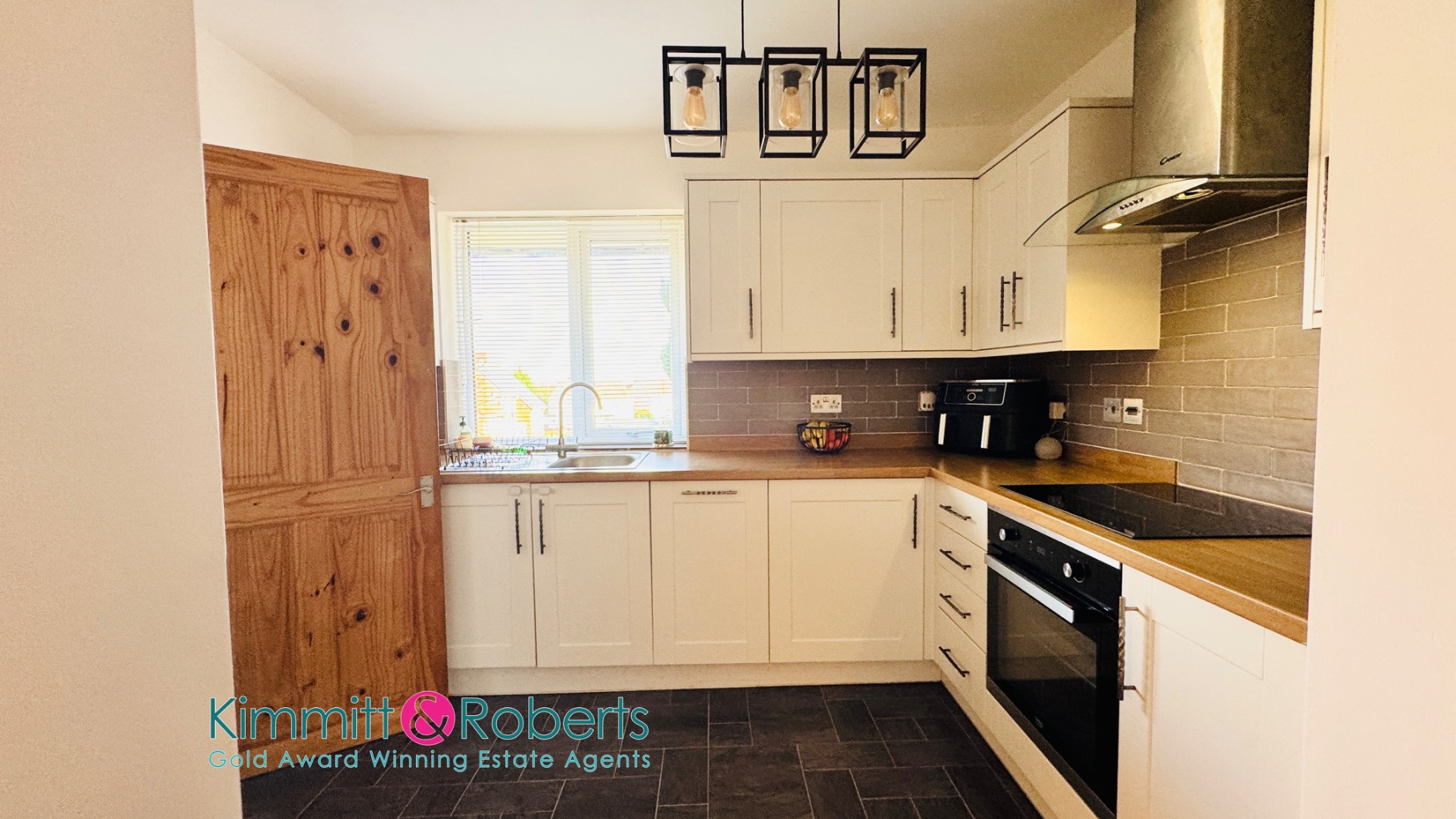Kitchen/Diner - 5.4 x 3.0 maxhaving a range of wall and base units with integrated electric hob, electric oven, sink unit, extractor hood, dishwasher, double glazed window, radiator multi-fuel burner and double glazed French doors to the rear.