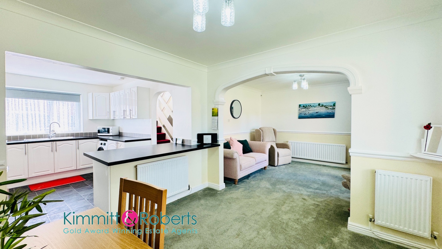 - Spacious layout includes modern kitchen, cloakroom, and stylish lounge/dining area