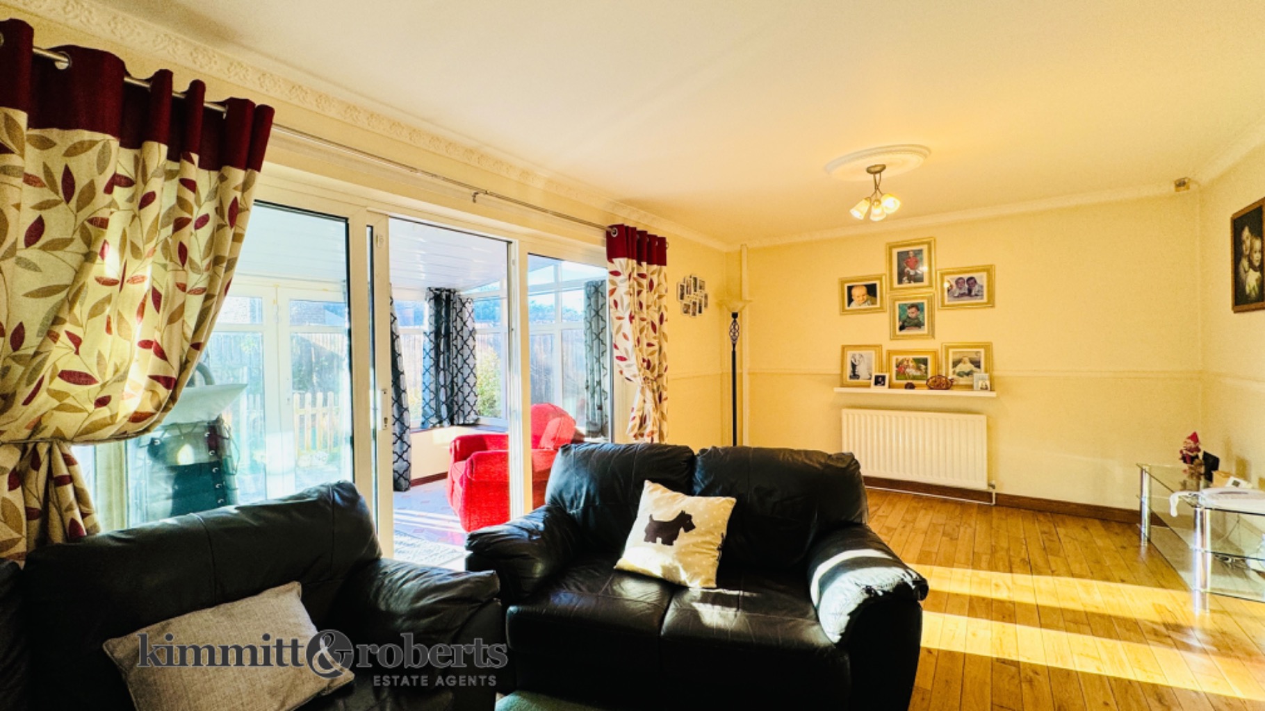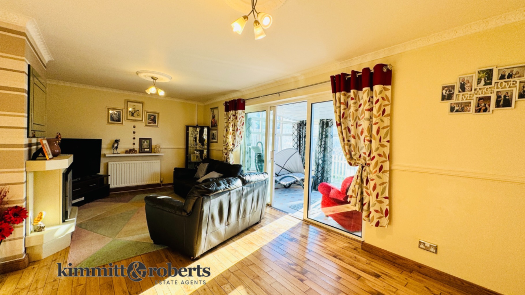 - Beautifully updated two-bedroom terraced home with oak flooring, a feature fireplace, and patio doors to a sunroom.