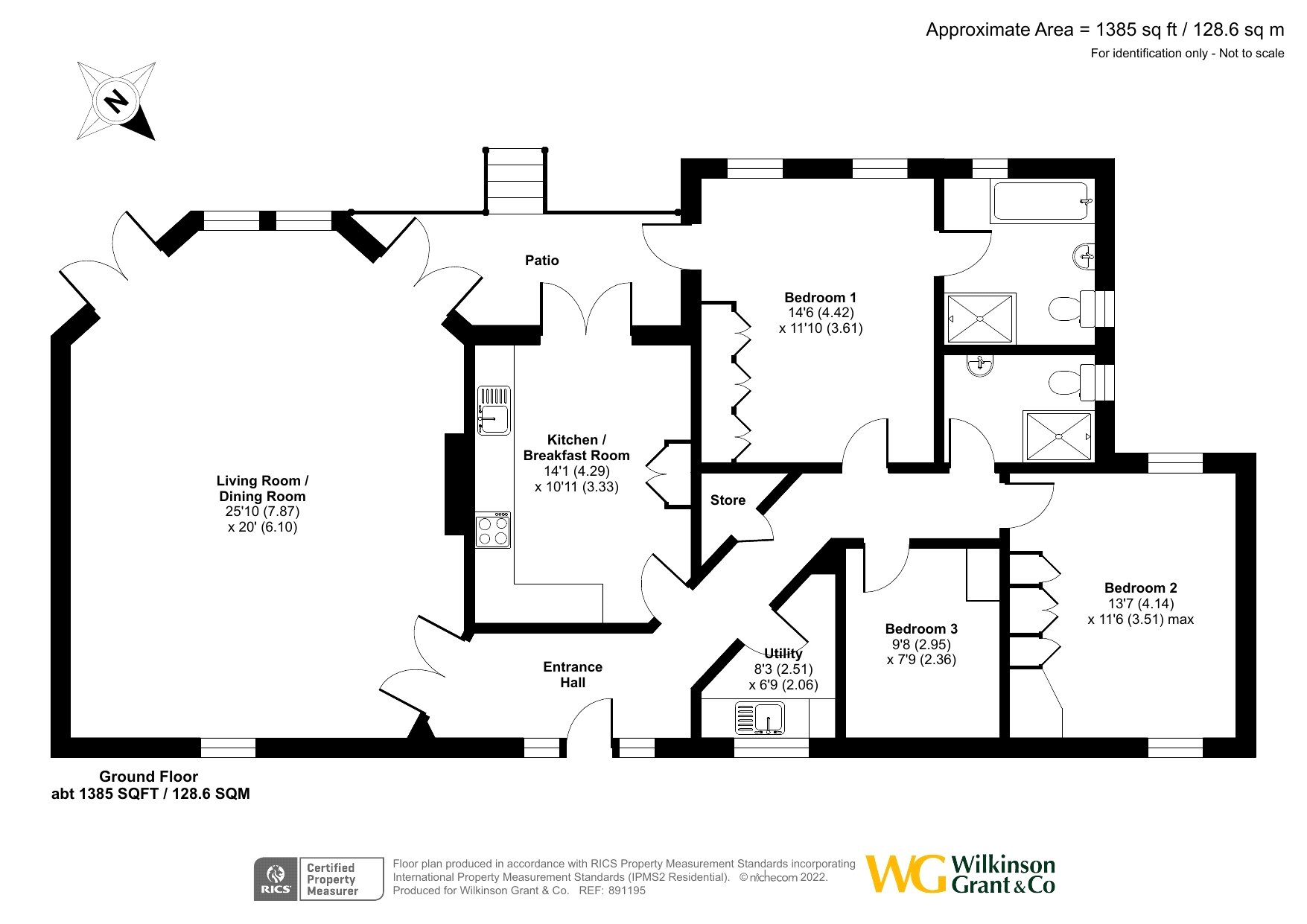 There are three bedrooms and a shower room, with the principal bedroom enjoying its own door to the patio and an en suite bathroom with walk-in shower. The property has gas central heating and double glazing.