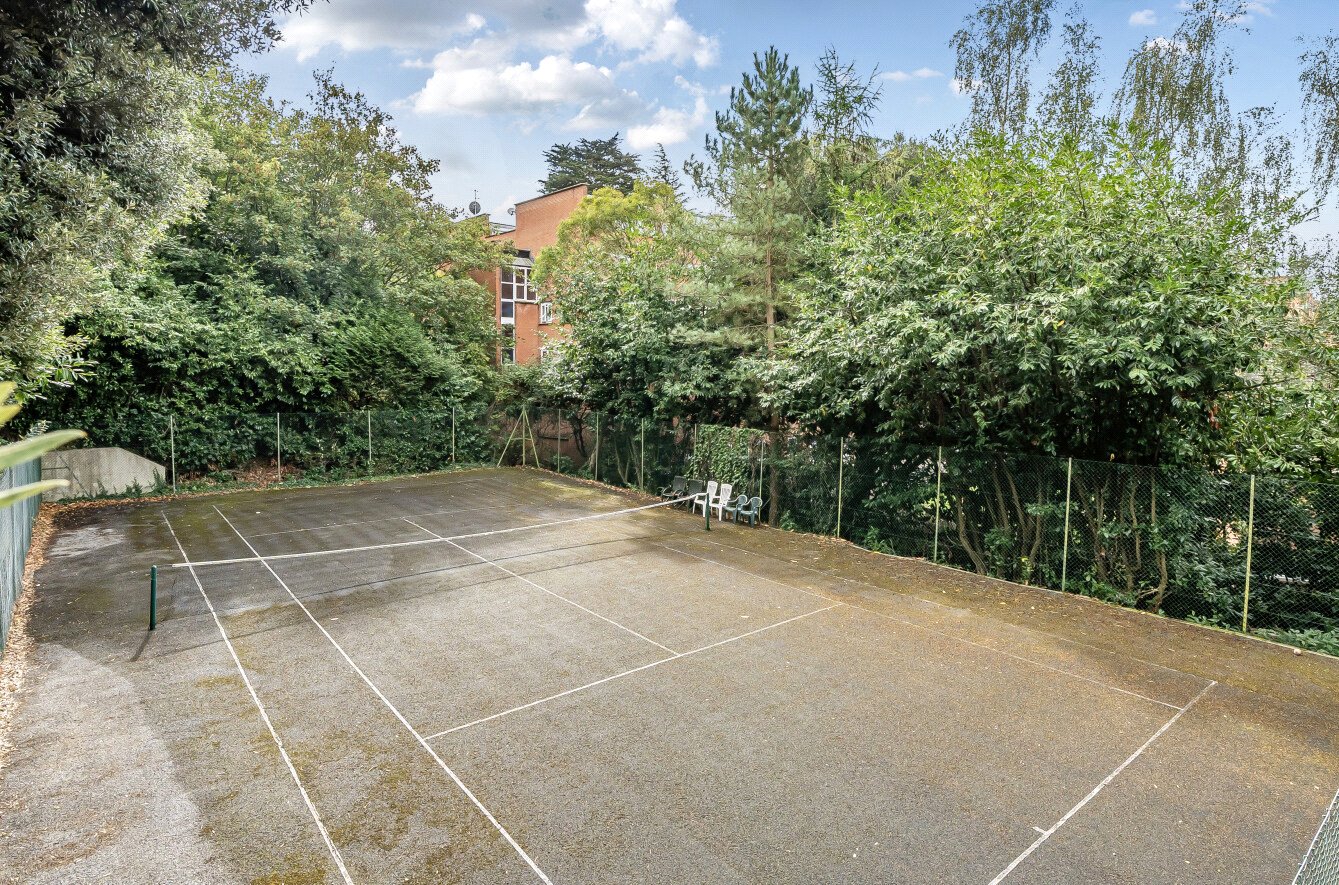 Outside, there are communal gardens with a tennis court, together with a garage, allocated parking space and visitors parking.