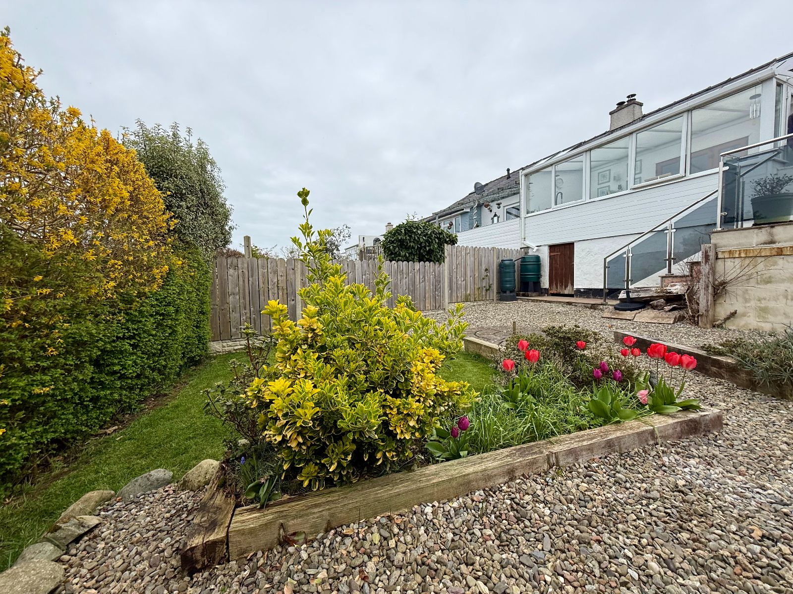 The property has been thoughtfully modernised to a high standard, including the installation of a contemporary kitchen, an energy-efficient air source heating system, and solar panels. Externally, the gardens have been fully redesigned with quality paving, secure fencing, and stylish glass balustrades, creating a safe, low-maintenance, and particularly dog-friendly outdoor space.