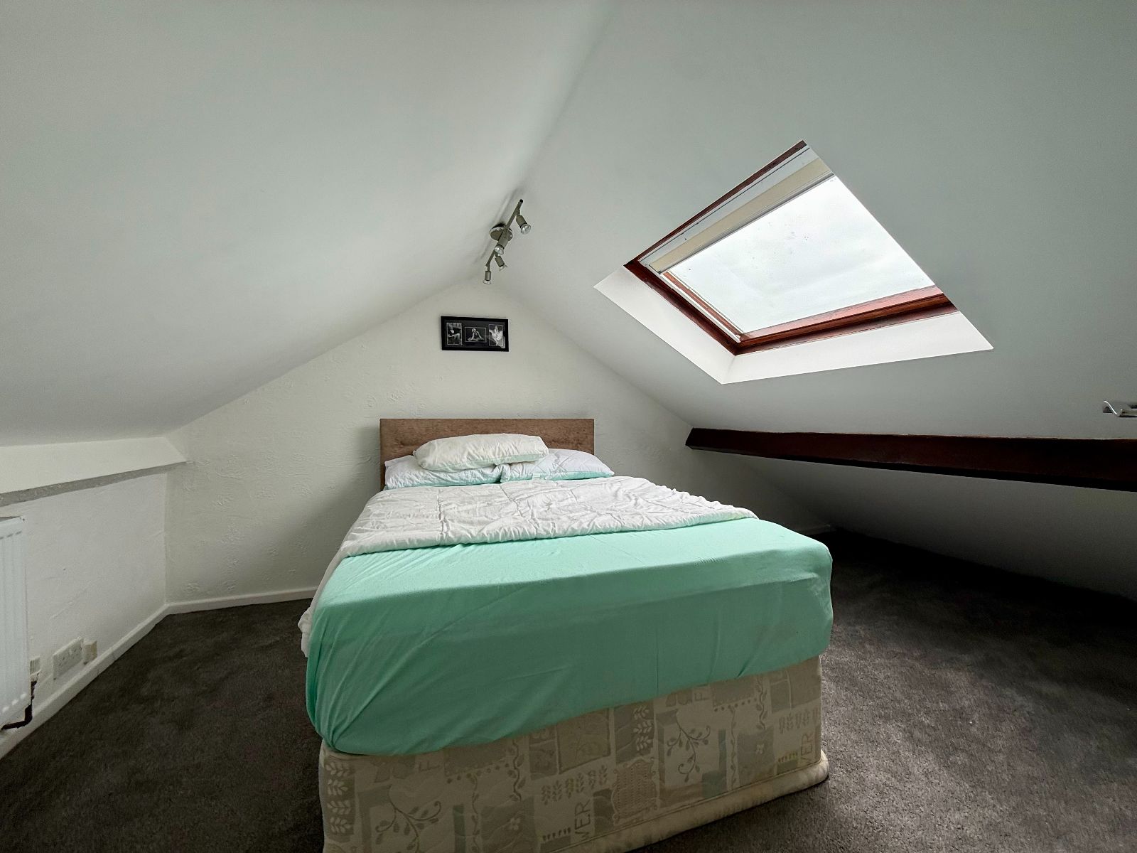 Velux to front, exposed beams, radiator, carpet.