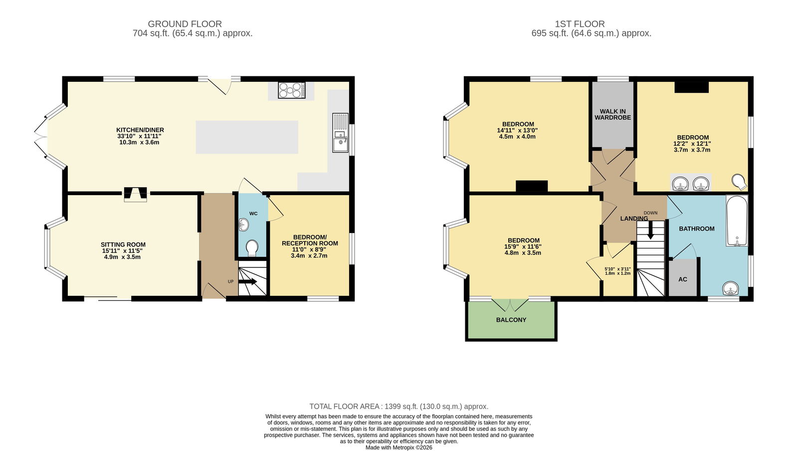 Downstairs Bedroom/Reception Room – 3.4m x 2.7m (11'1" x 8'10")