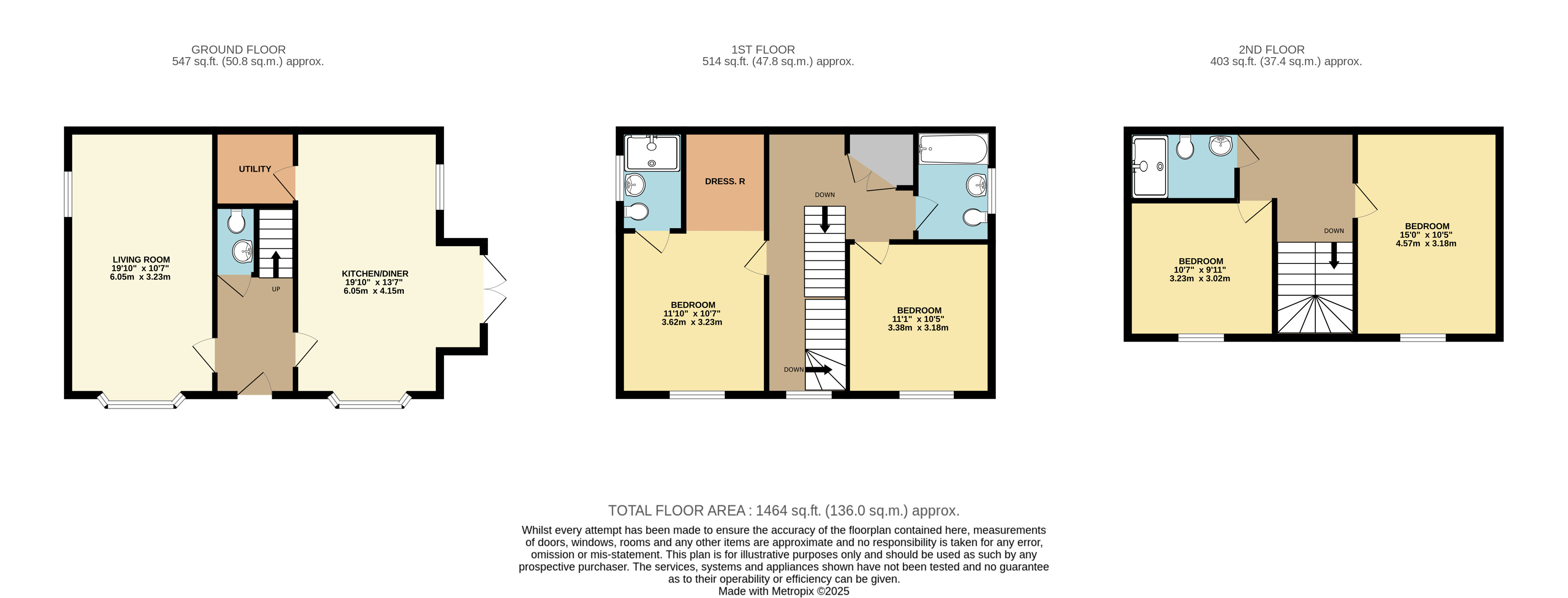 Brief internal accommodation comprises an entrance hallway, guest cloakroom, living room, kitchen/diner and utility room. The first floor offers three bedrooms, en-suite and family bathroom. The second floor offers a further two bedrooms and additional shower room.